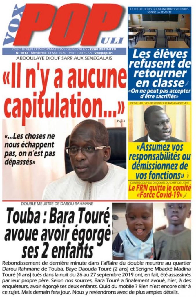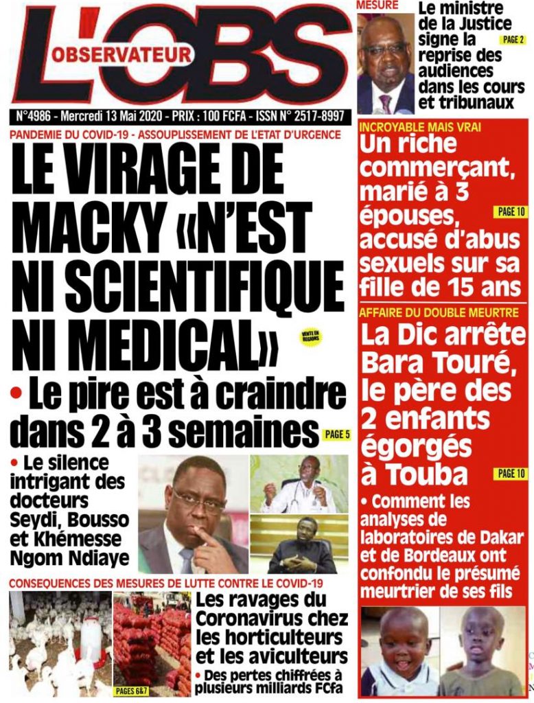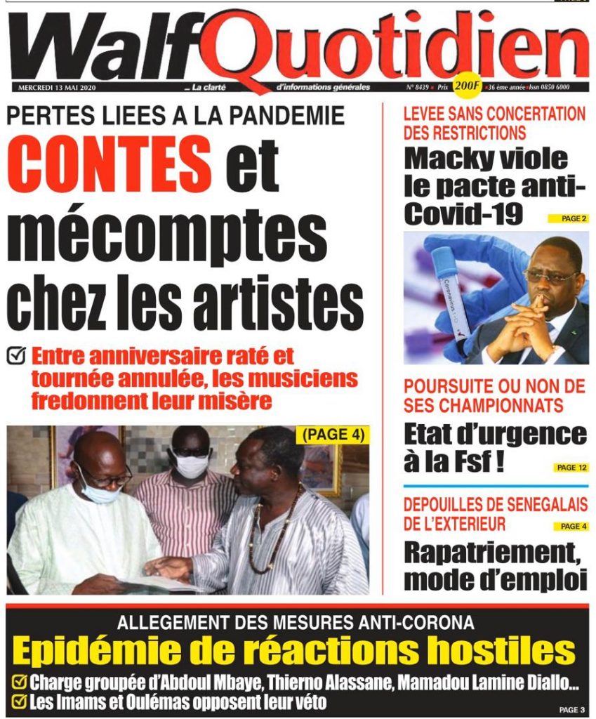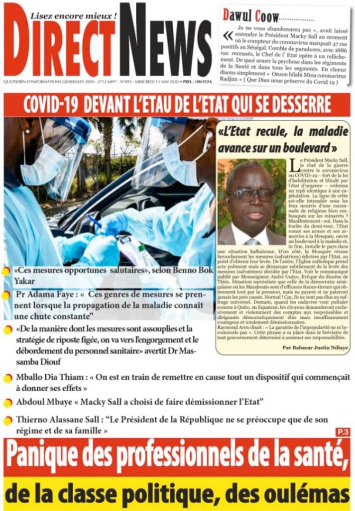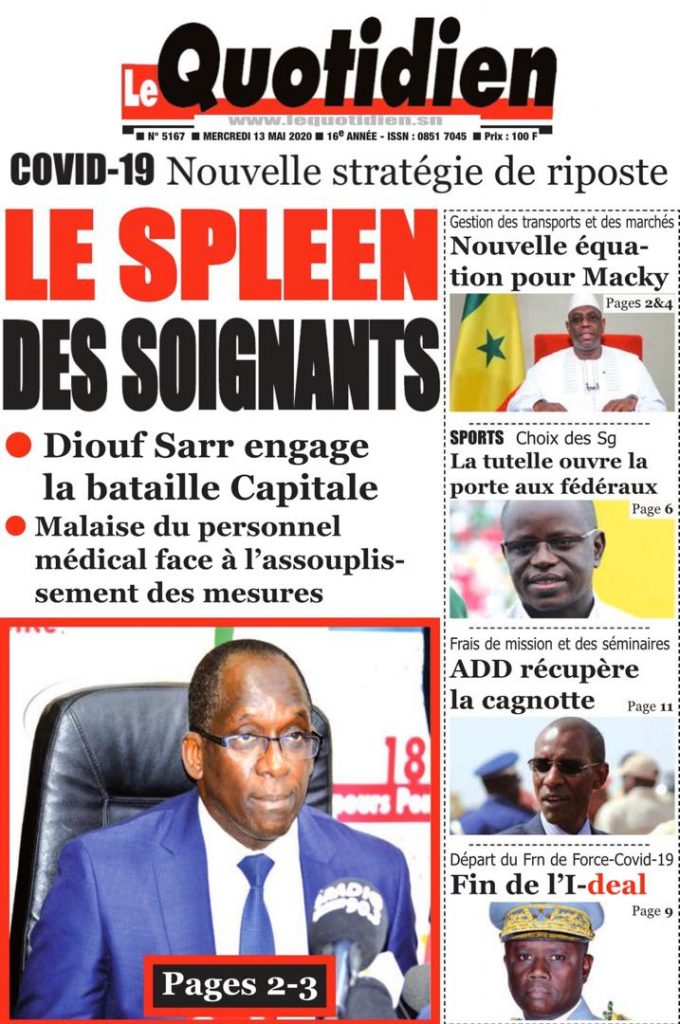 " /> La Une des quotidiens du Mercredi 13 Mai 2020 Publié le 13 Mai, 2020 À DÉCOUVRIR Les Unes des quotidiens nationaux du 01 décembre 2025 1 Déc, 2025 Source : Ma Revue de presse par Mamadou Ly – rp221.com Partager ->
