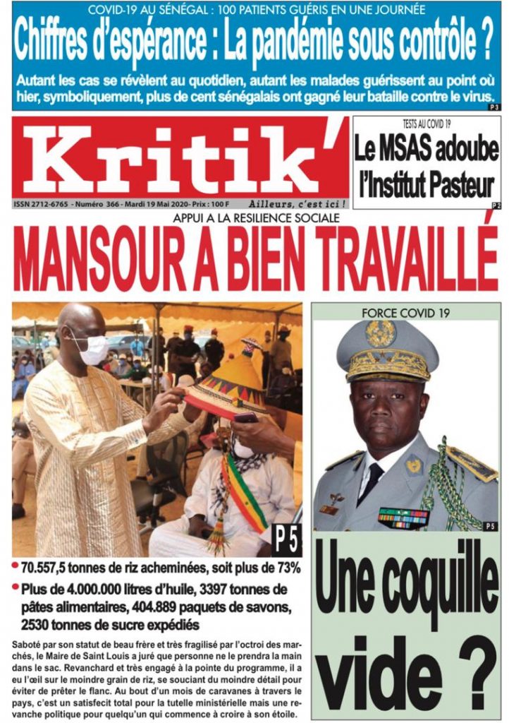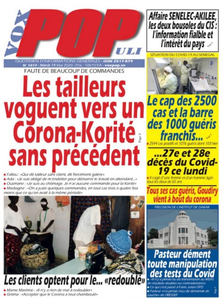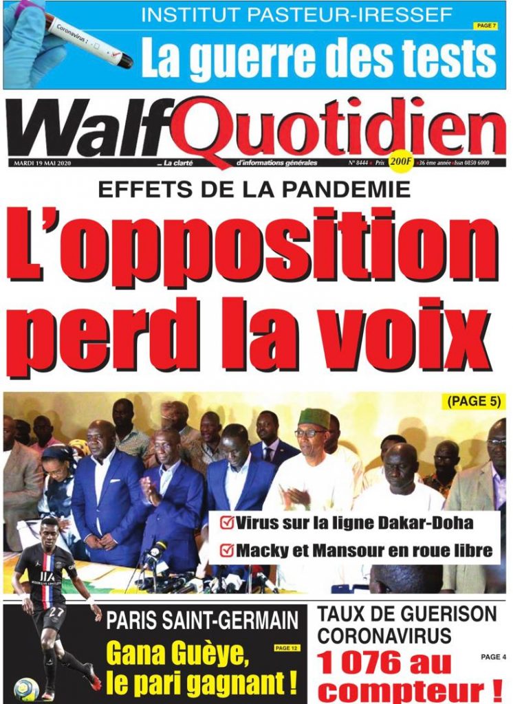 " /> La Une des quotidiens du Mardi 19 Mai 2020 Publié le 19 Mai, 2020 À DÉCOUVRIR Les Unes des quotidiens nationaux du 03 novembre 2025 3 Nov, 2025 Source : Ma Revue de presse par Mamadou Ly – rp221.com Partager ->