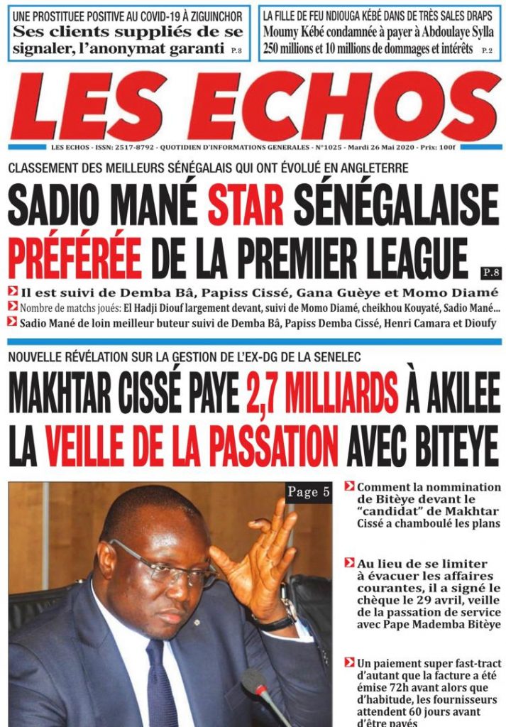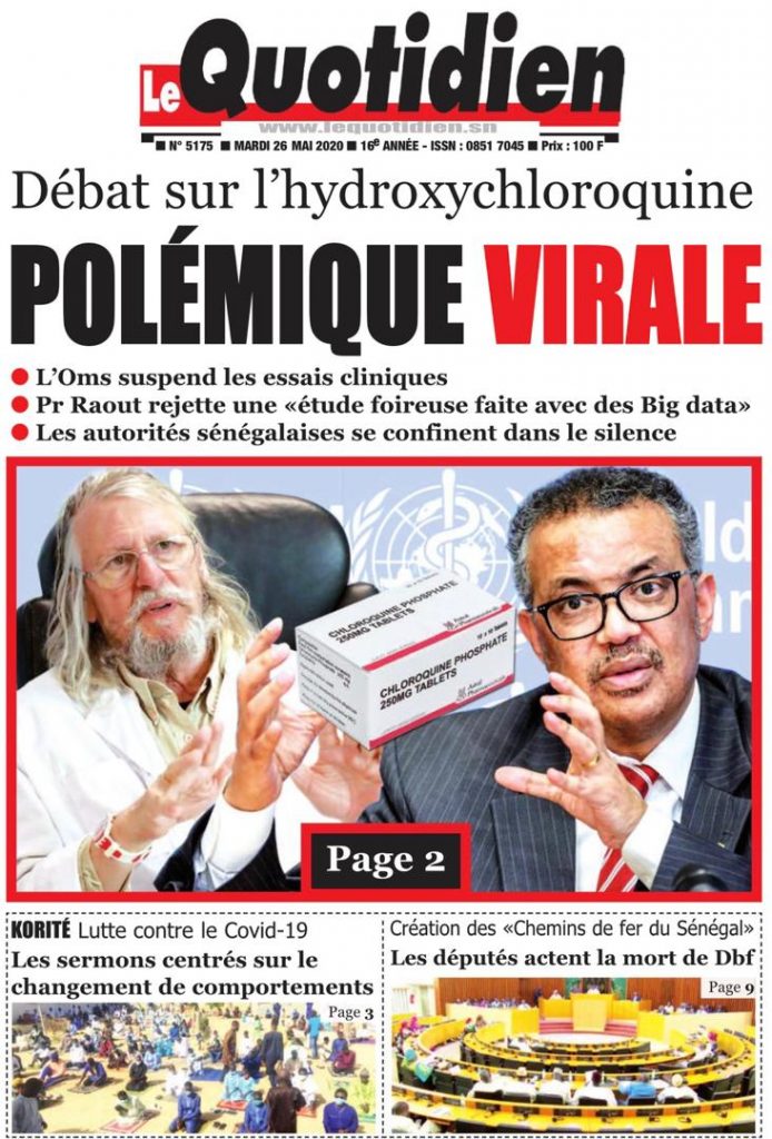 " /> La Une des quotidiens du Mardi 26 Mai 2020 Publié le 26 Mai, 2020 À DÉCOUVRIR Les Unes des quotidiens nationaux du 05 novembre 2025 5 Nov, 2025 Source : Ma Revue de presse par Mamadou Ly – rp221.com Partager ->