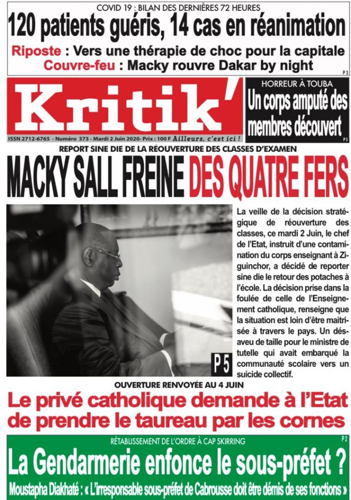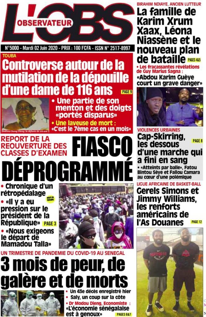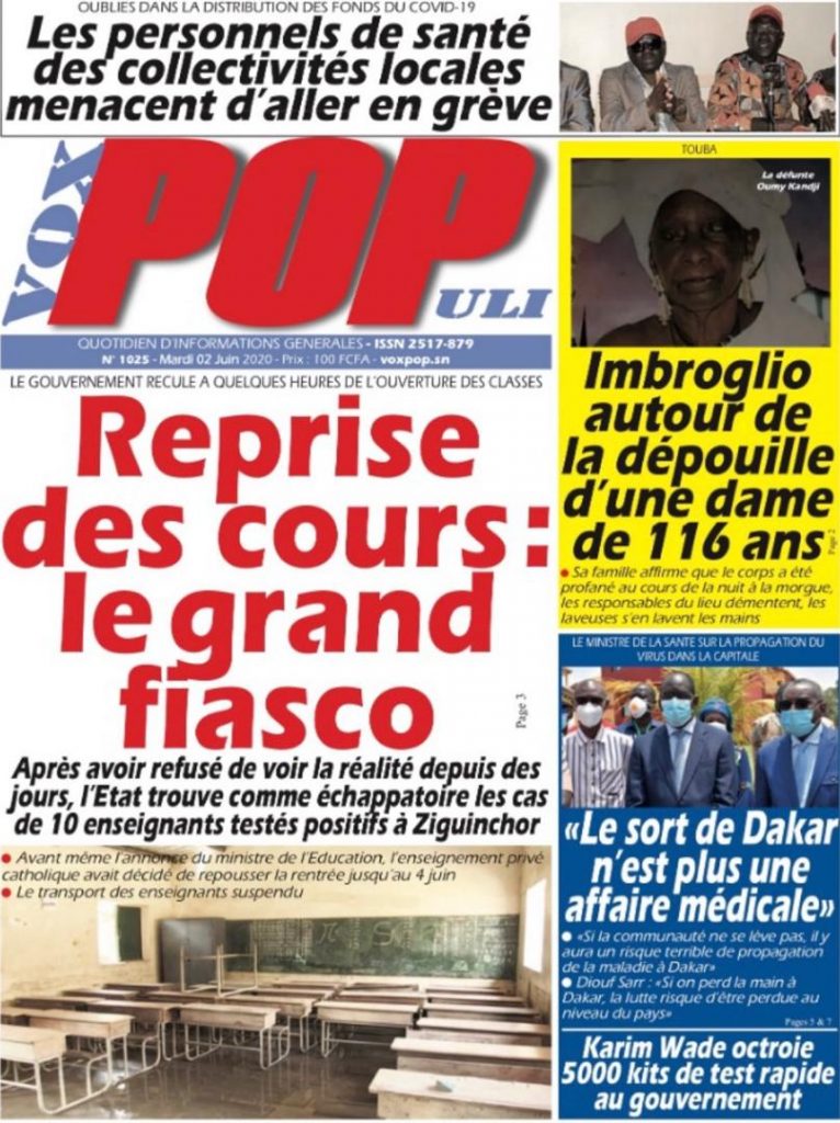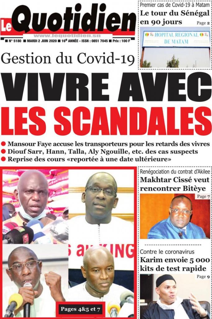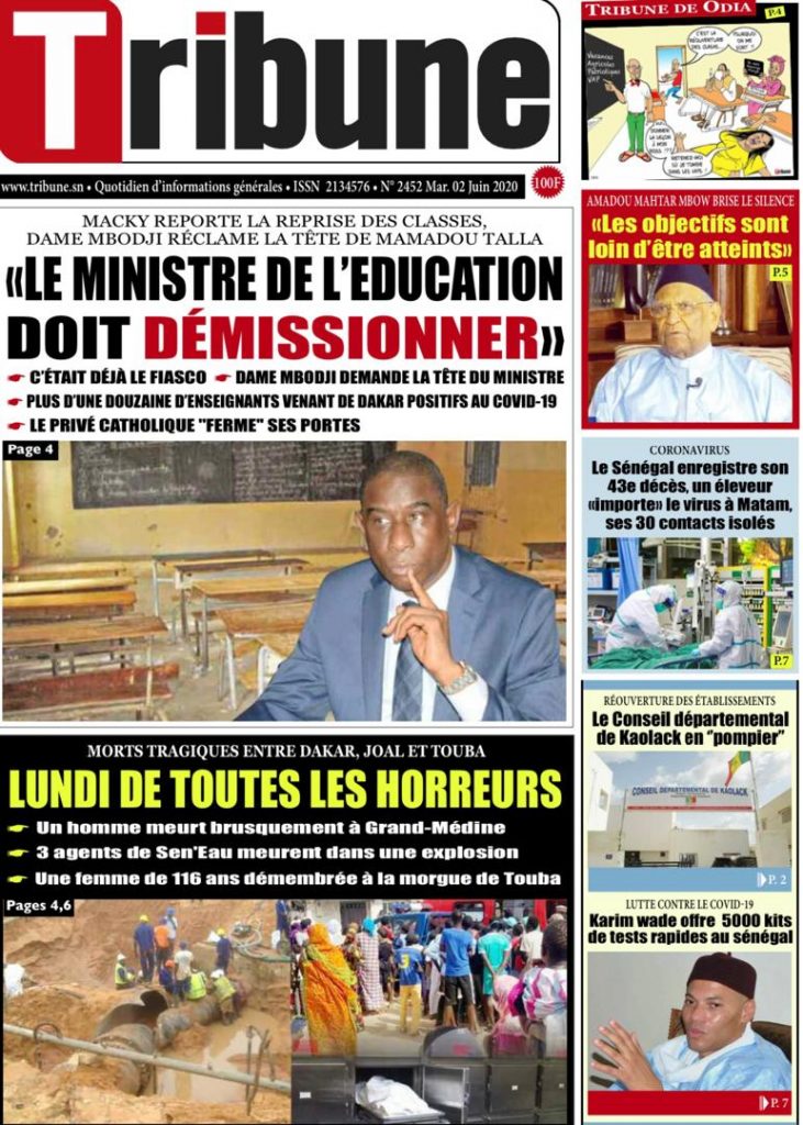 " /> La Une des quotidiens du Mardi 2 Juin 2020 Publié le 2 Juin, 2020 À DÉCOUVRIR Les Unes des quotidiens nationaux du 05 novembre 2025 5 Nov, 2025 Source : Ma Revue de presse par Mamadou Ly – rp221.com Partager ->
