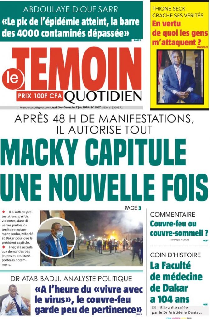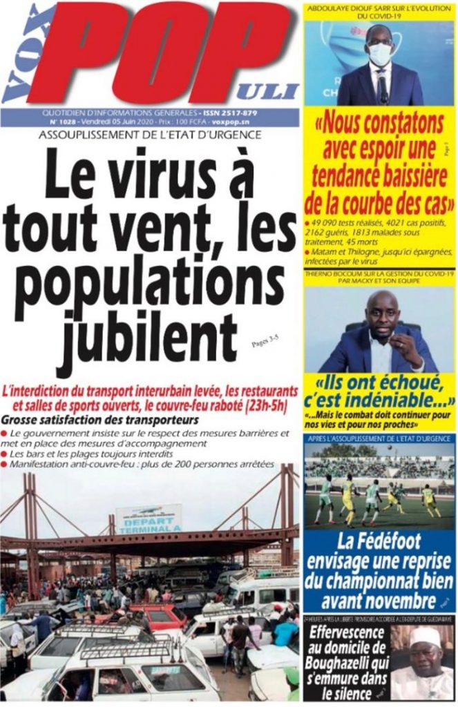 " /> La Une des Quotidiens du Vendredi 05 Juin 2020 Publié le 5 Juin, 2020 À DÉCOUVRIR Les Unes des quotidiens nationaux du 15 novembre 2025 15 Nov, 2025 Source : Ma Revue de presse par Mamadou Ly – rp221.com Partager ->