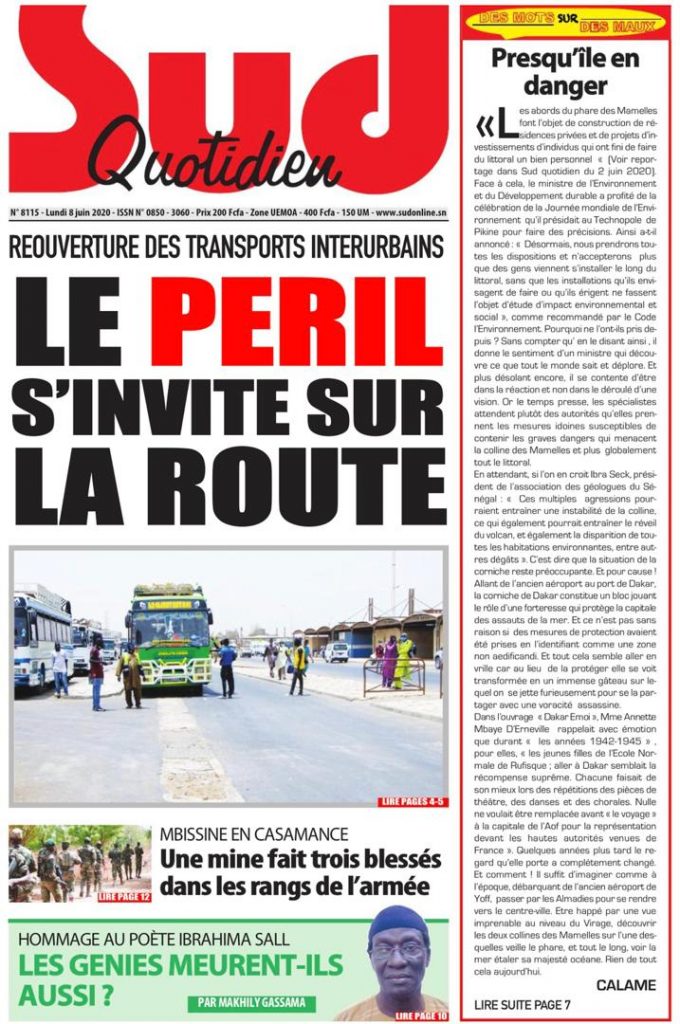" /> La Une des Quotidiens du Lundi 08 Juin 2020 Publié le 8 Juin, 2020 À DÉCOUVRIR Les Unes des quotidiens nationaux du 15 novembre 2025 15 Nov, 2025 Source : Ma Revue de presse par Mamadou Ly – rp221.com Partager ->