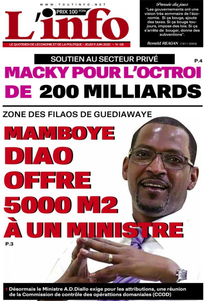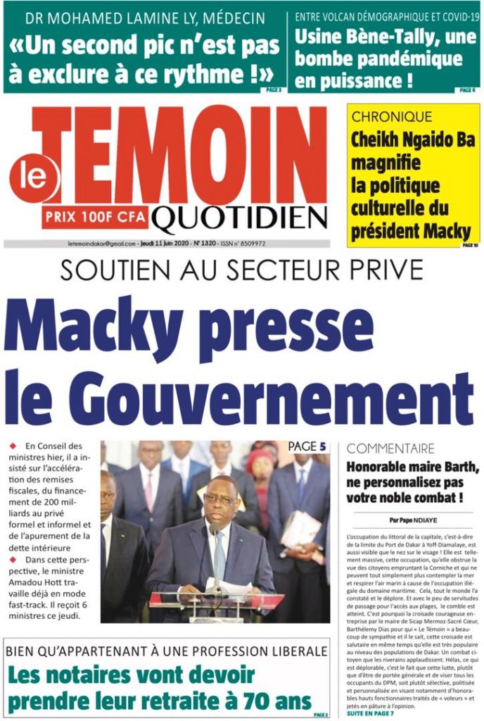 " /> La Une des Quotidiens du Jeudi 11 Juin 2020 Publié le 11 Juin, 2020 À DÉCOUVRIR Les Unes des quotidiens nationaux du 31 octobre 2025 31 Oct, 2025 Source : Ma Revue de presse par Mamadou Ly – rp221.com Partager ->