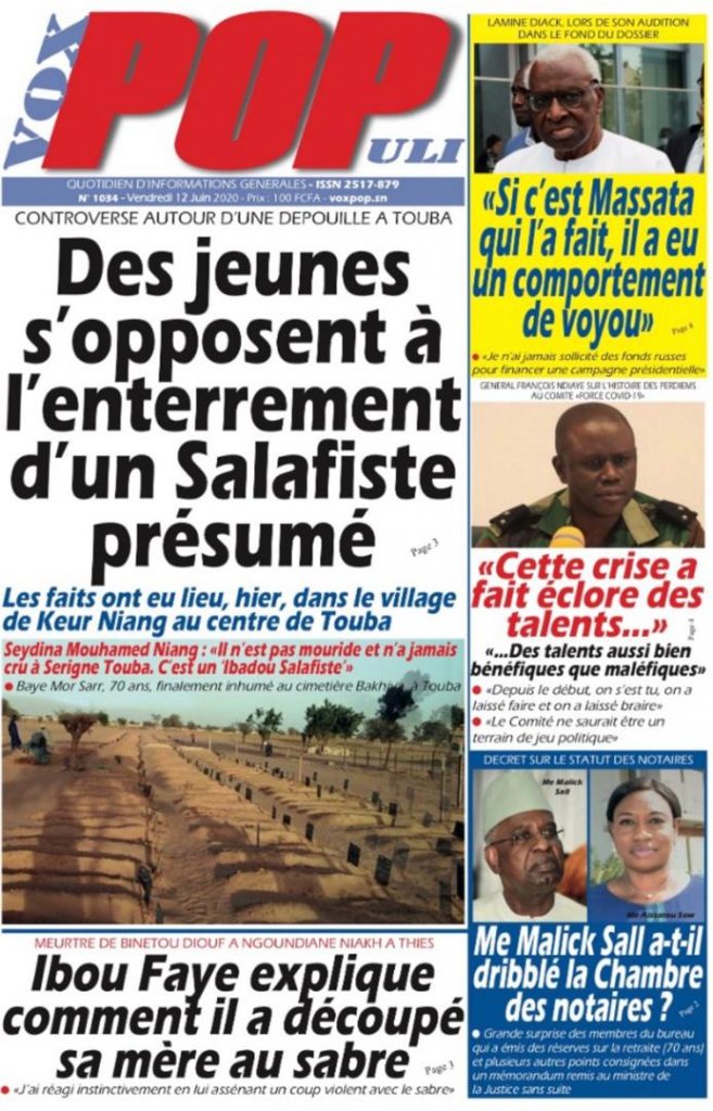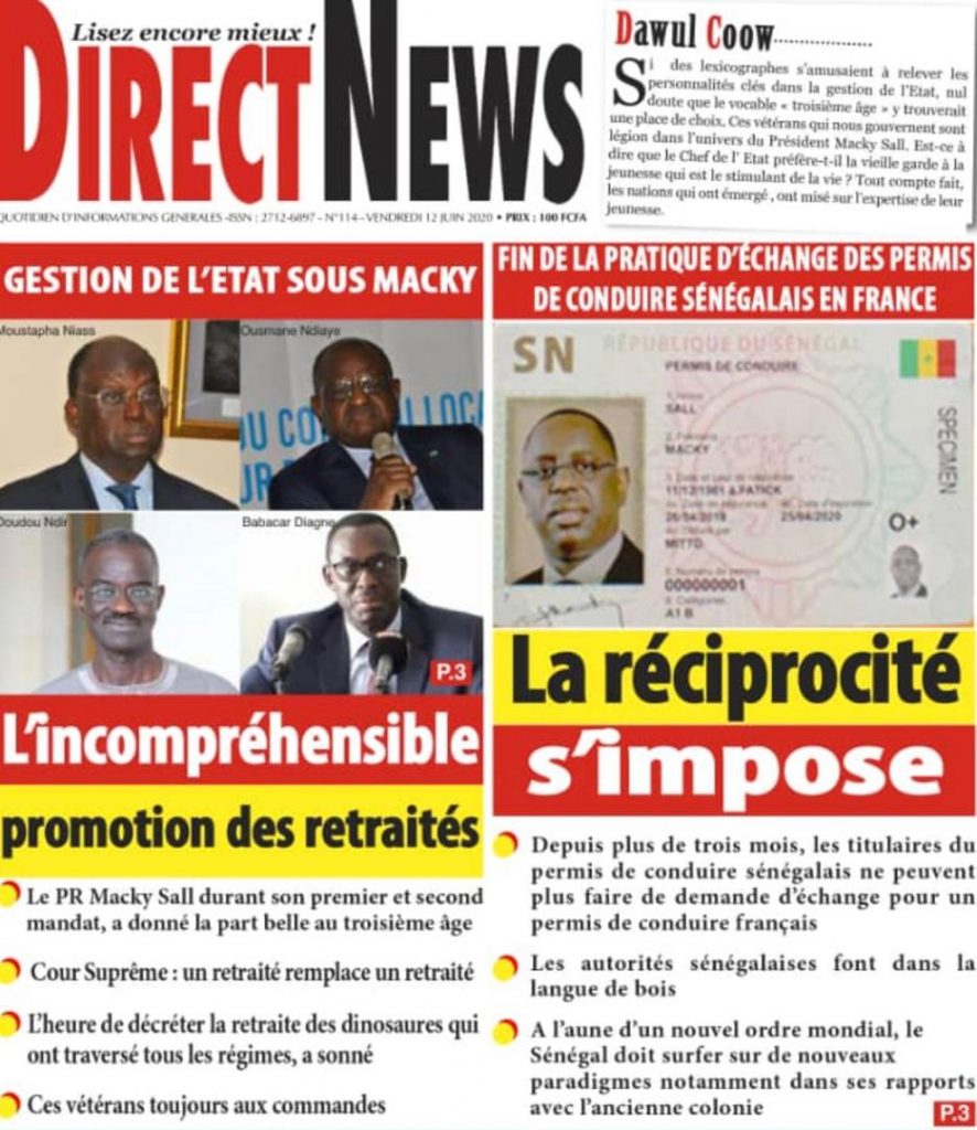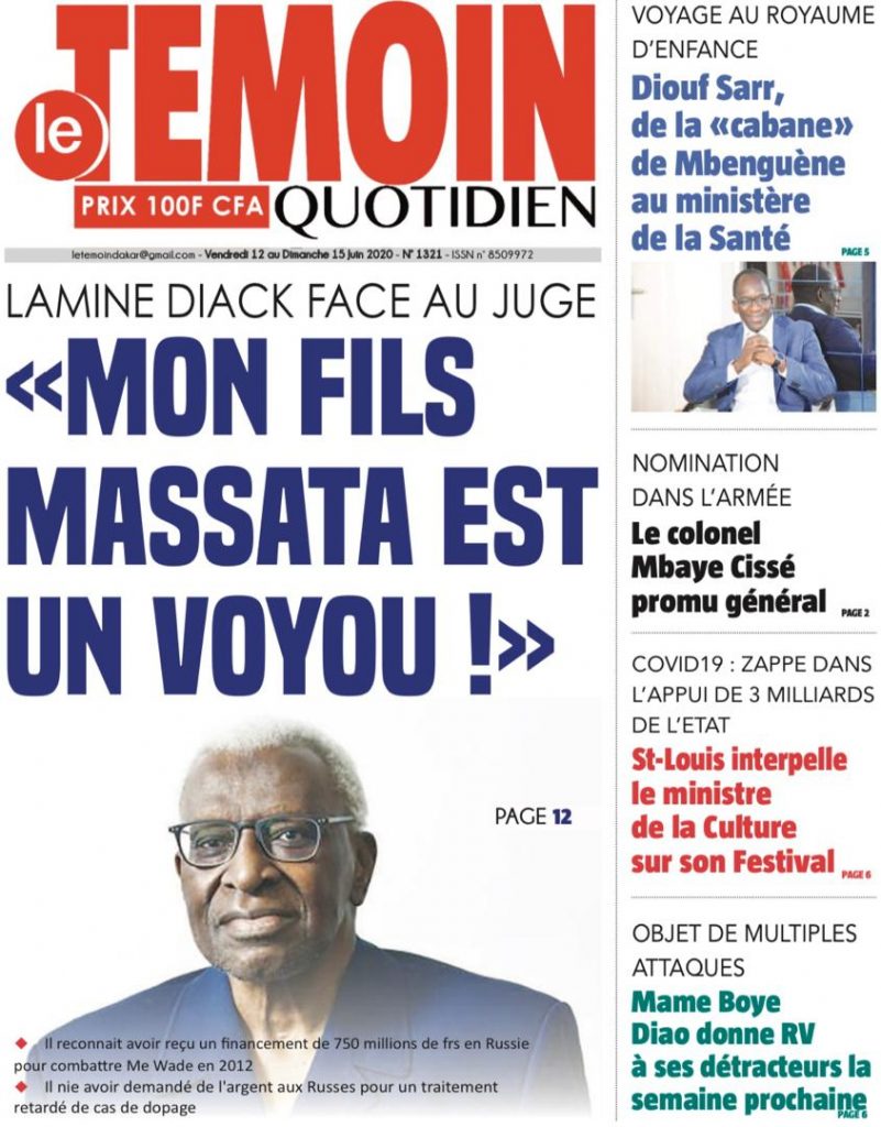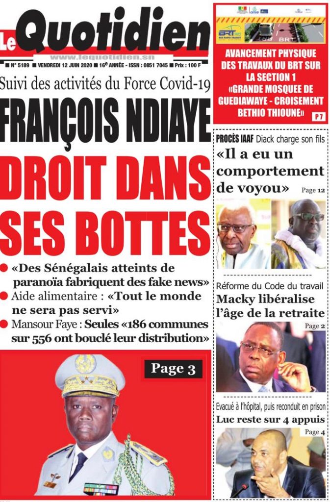 " /> La Une des Quotidiens du Vendredi 12 Juin 2020 Publié le 12 Juin, 2020 À DÉCOUVRIR Les Unes des quotidiens nationaux du 28 novembre 2025 28 Nov, 2025 Source : Ma Revue de presse par Mamadou Ly – rp221.com Partager ->