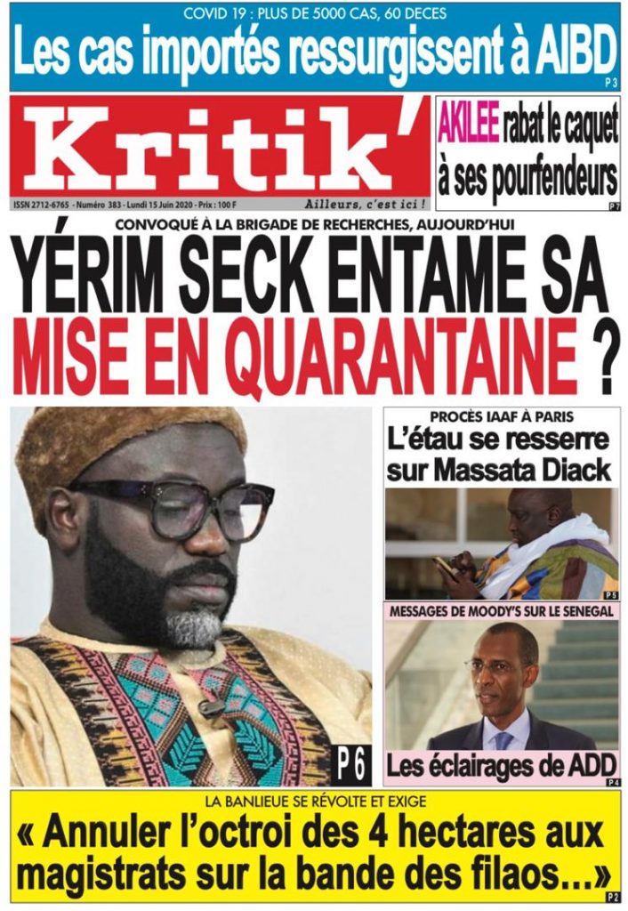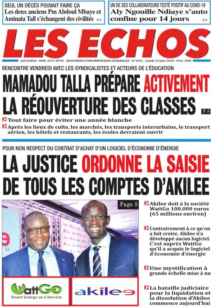" /> La Une des Quotidiens du Lundi 15 Juin 2020 Publié le 15 Juin, 2020 À DÉCOUVRIR Les Unes des quotidiens nationaux du 29 octobre 2025 29 Oct, 2025 Source : Ma Revue de presse par Mamadou Ly – rp221.com Partager ->