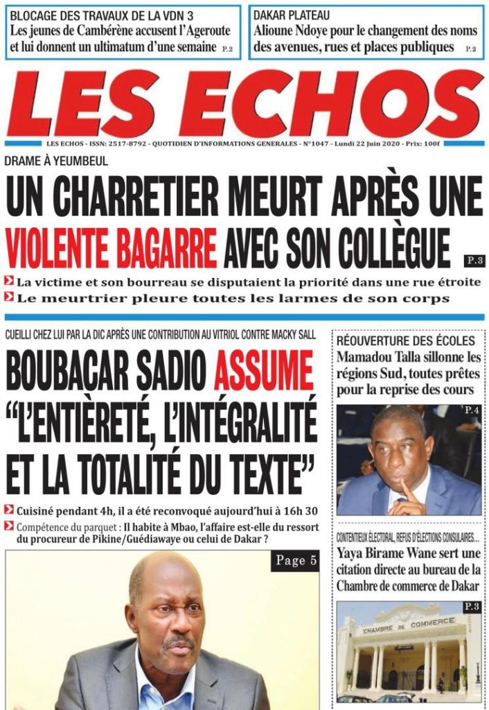 " /> La Une des Quotidiens du Lundi 22 Juin 2020 Publié le 22 Juin, 2020 À DÉCOUVRIR Les Unes des quotidiens nationaux du 03 novembre 2025 3 Nov, 2025 Partager ->