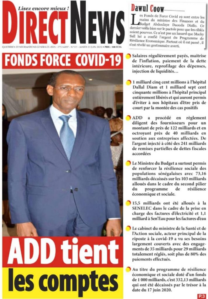 " /> La Une des Quotidiens du Mardi 23 Juin 2020 Publié le 23 Juin, 2020 À DÉCOUVRIR Les Unes des quotidiens nationaux du 19 novembre 2025 19 Nov, 2025 Source : Ma Revue de presse par Mamadou Ly – rp221.com Partager ->