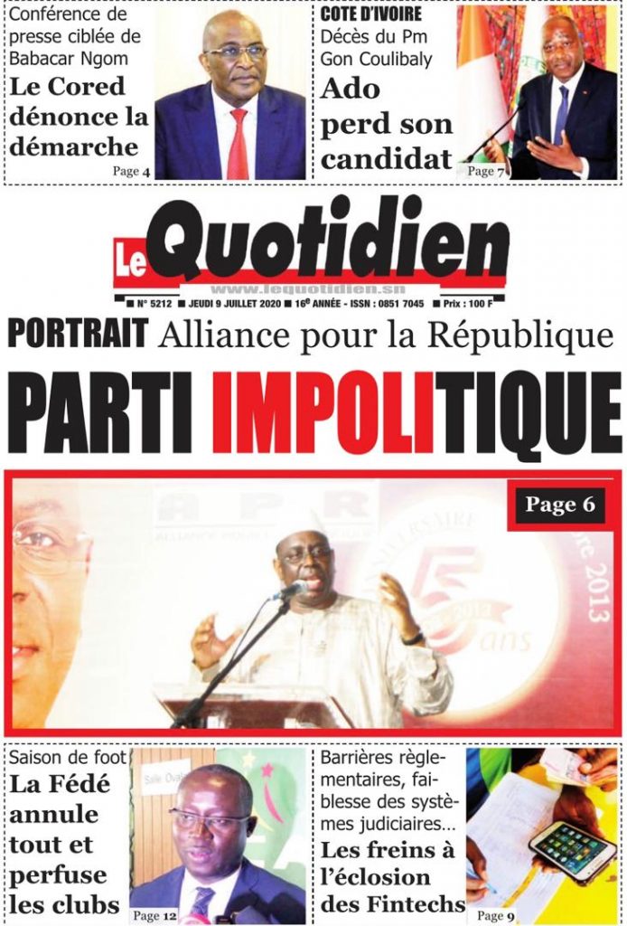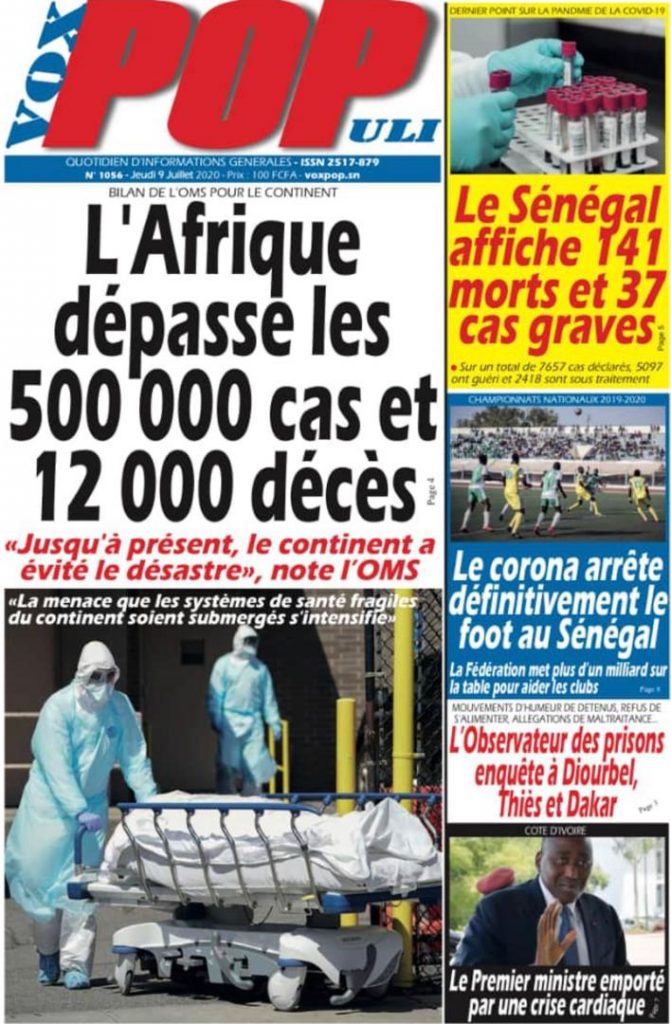 " /> La Une des Quotidiens du Jeudi 09 Juillet 2020 Publié le 9 Juil, 2020 À DÉCOUVRIR Les Unes des quotidiens nationaux du 03 novembre 2025 3 Nov, 2025 Source : Ma Revue de presse par Mamadou Ly – rp221.com Partager ->