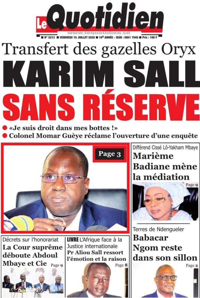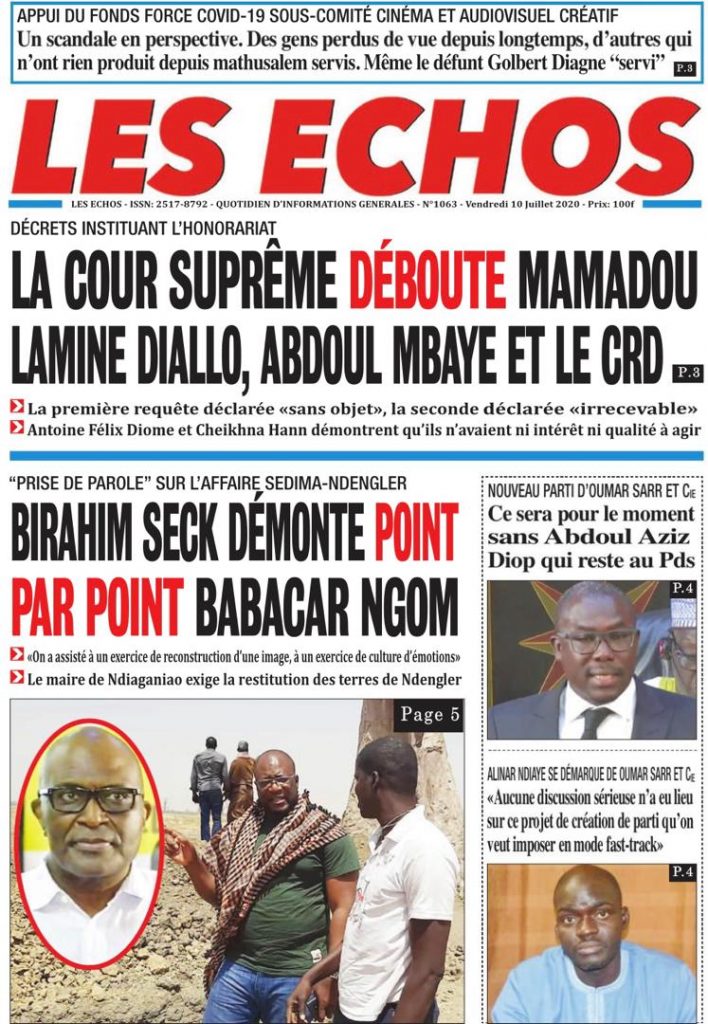 " /> La Une des Quotidiens du Vendredi 10 Juillet 2020 Publié le 10 Juil, 2020 À DÉCOUVRIR Les Unes des quotidiens nationaux du 03 novembre 2025 3 Nov, 2025 Source : Ma Revue de presse par Mamadou Ly – rp221.com Partager ->