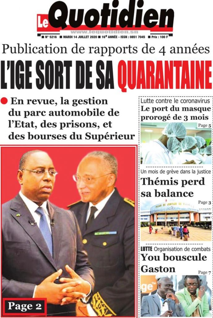 " /> La Une des Quotidiens du Mardi 14 Juillet 2020 Publié le 14 Juil, 2020 À DÉCOUVRIR Les Unes des quotidiens nationaux du 03 novembre 2025 3 Nov, 2025 Source : Ma Revue de presse par Mamadou Ly – rp221.com Partager ->