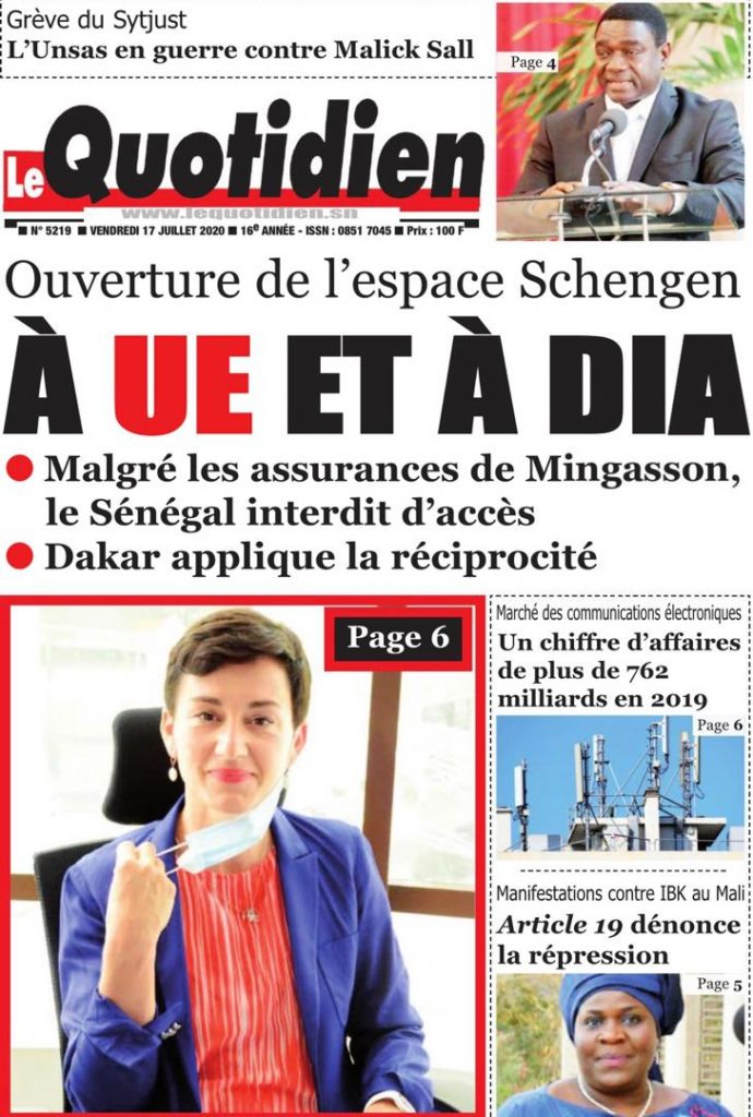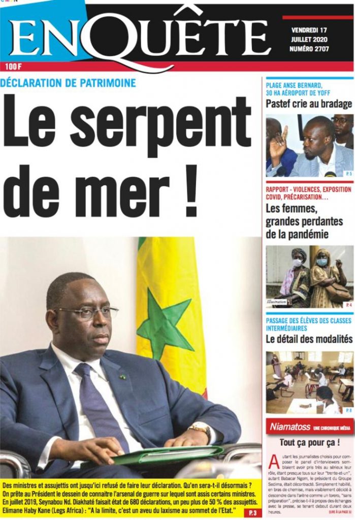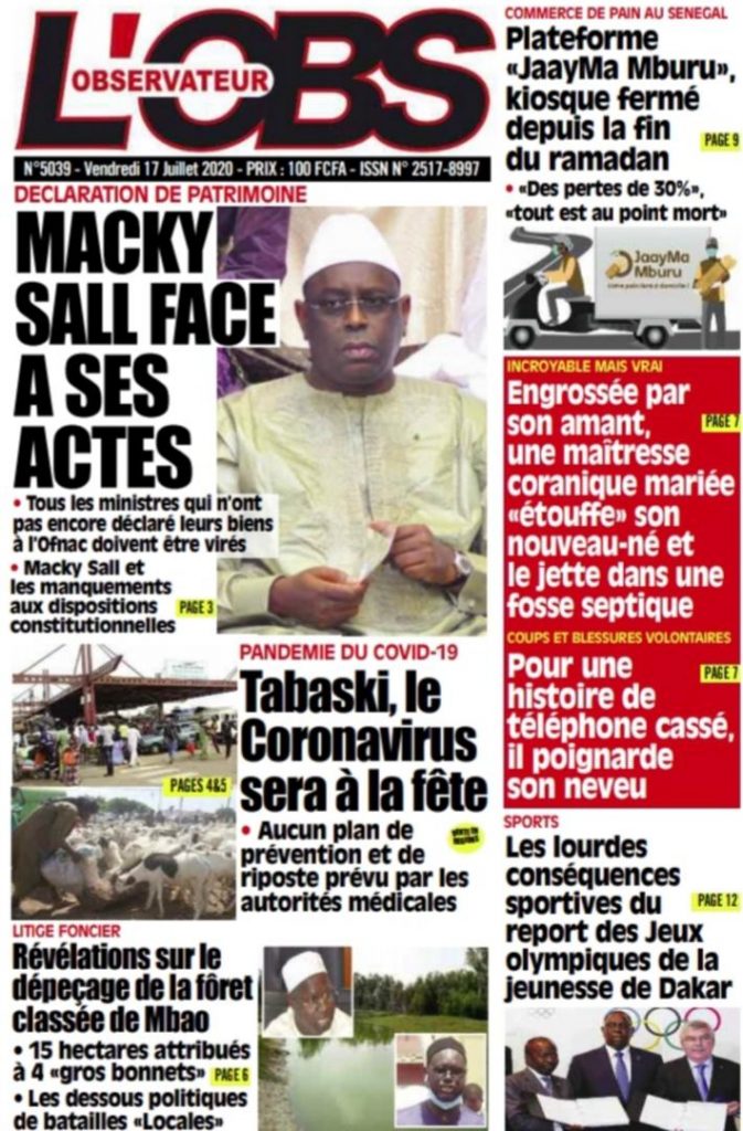 " /> La Une des Quotidiens du Vendredi 17 Juillet 2020 Publié le 17 Juil, 2020 À DÉCOUVRIR Les Unes des quotidiens nationaux du 03 novembre 2025 3 Nov, 2025 Source : Ma Revue de presse par Mamadou Ly – rp221.com Partager ->