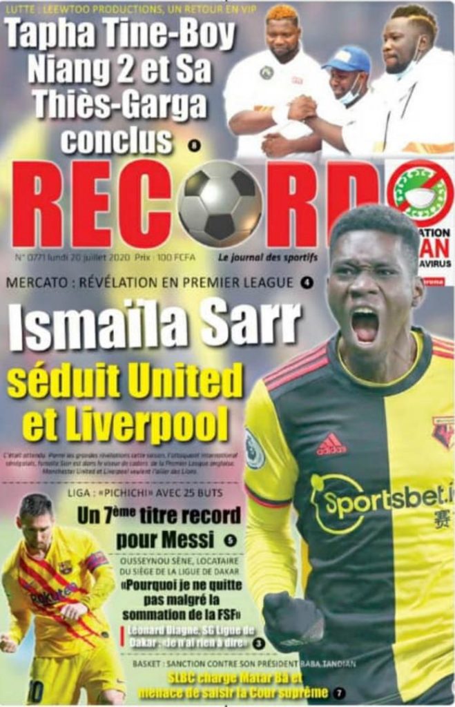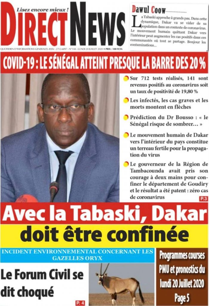 " /> La Une des Quotidiens du Lundi 20 Juillet 2020 Publié le 20 Juil, 2020 À DÉCOUVRIR Les Unes des quotidiens nationaux du 03 novembre 2025 3 Nov, 2025 Source : Ma Revue de presse par Mamadou Ly – rp221.com Partager ->