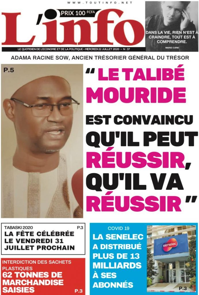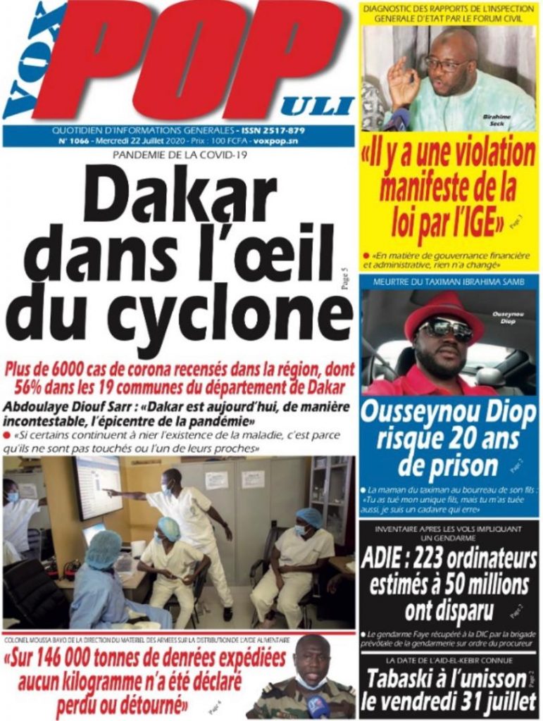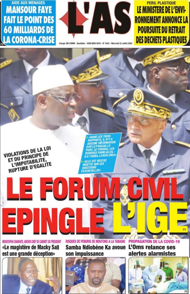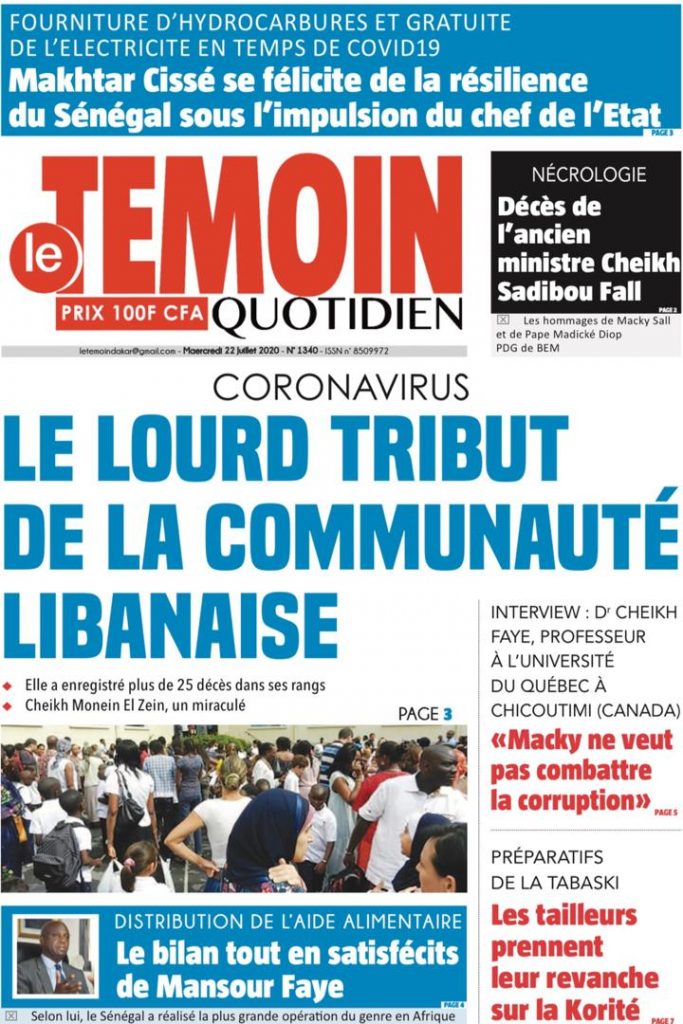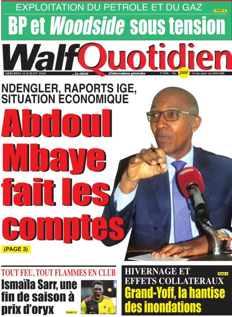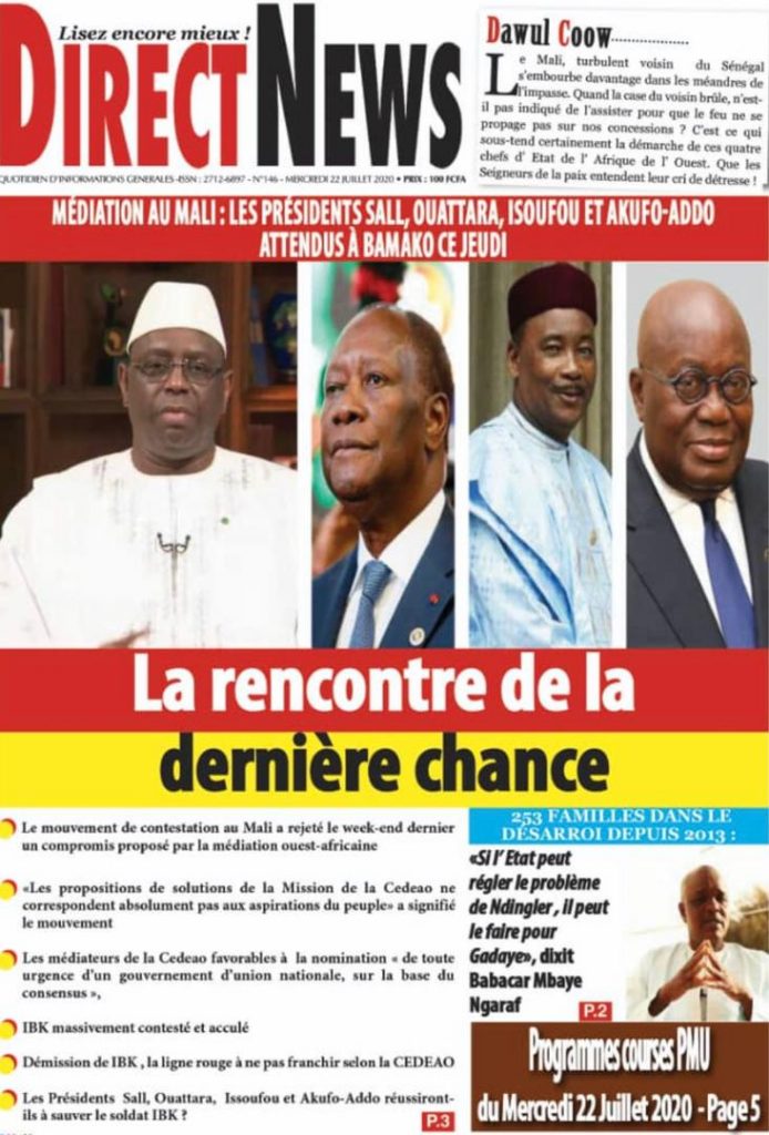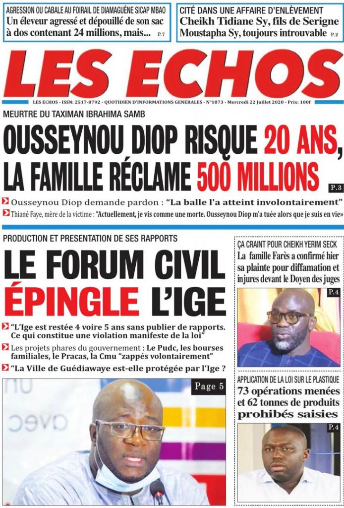 " /> La Une des Quotidiens du Mercredi 22 Juillet 2020 Publié le 22 Juil, 2020 À DÉCOUVRIR Les Unes des quotidiens nationaux du 05 novembre 2025 5 Nov, 2025 Source : Ma Revue de presse par Mamadou Ly – rp221.com Partager ->