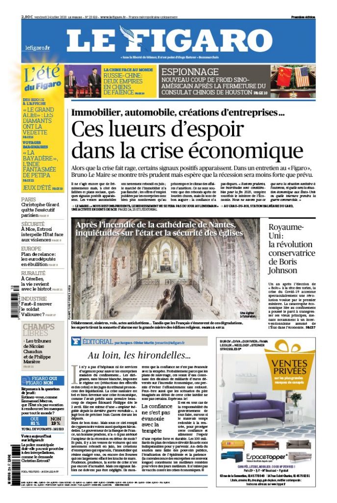 " /> La Une des Quotidiens Internationaux du Vendredi 24 Juillet 2020 Publié le 24 Juil, 2020 À DÉCOUVRIR Les Unes des quotidiens nationaux du 03 novembre 2025 3 Nov, 2025 Partager ->