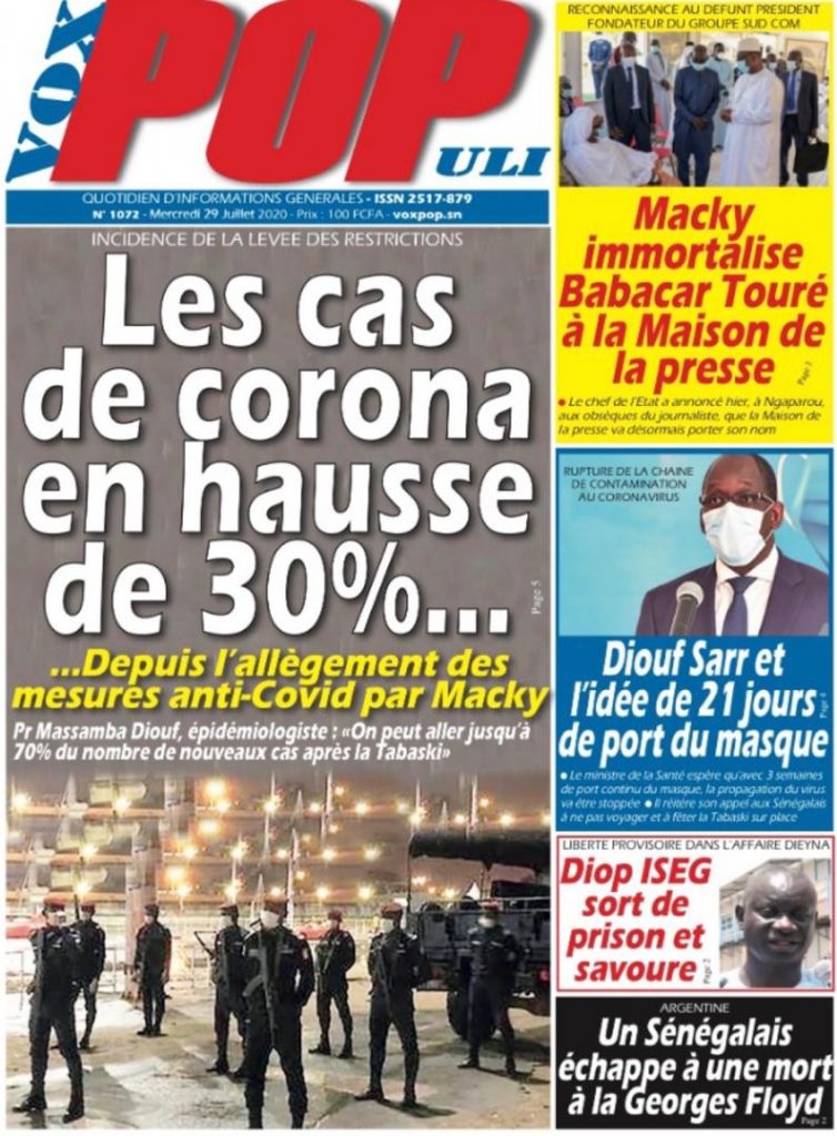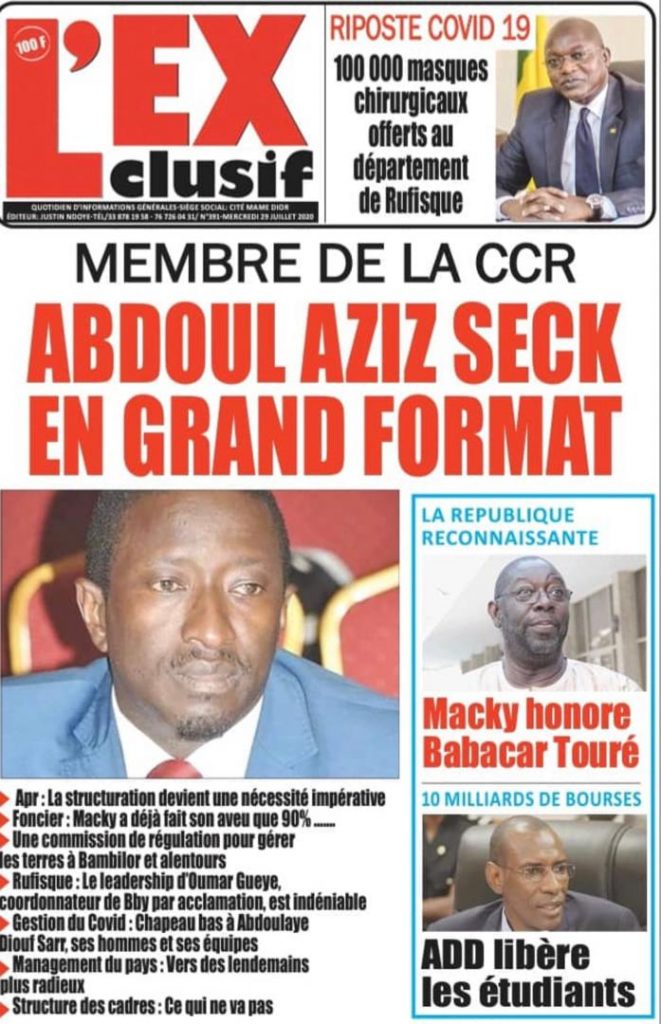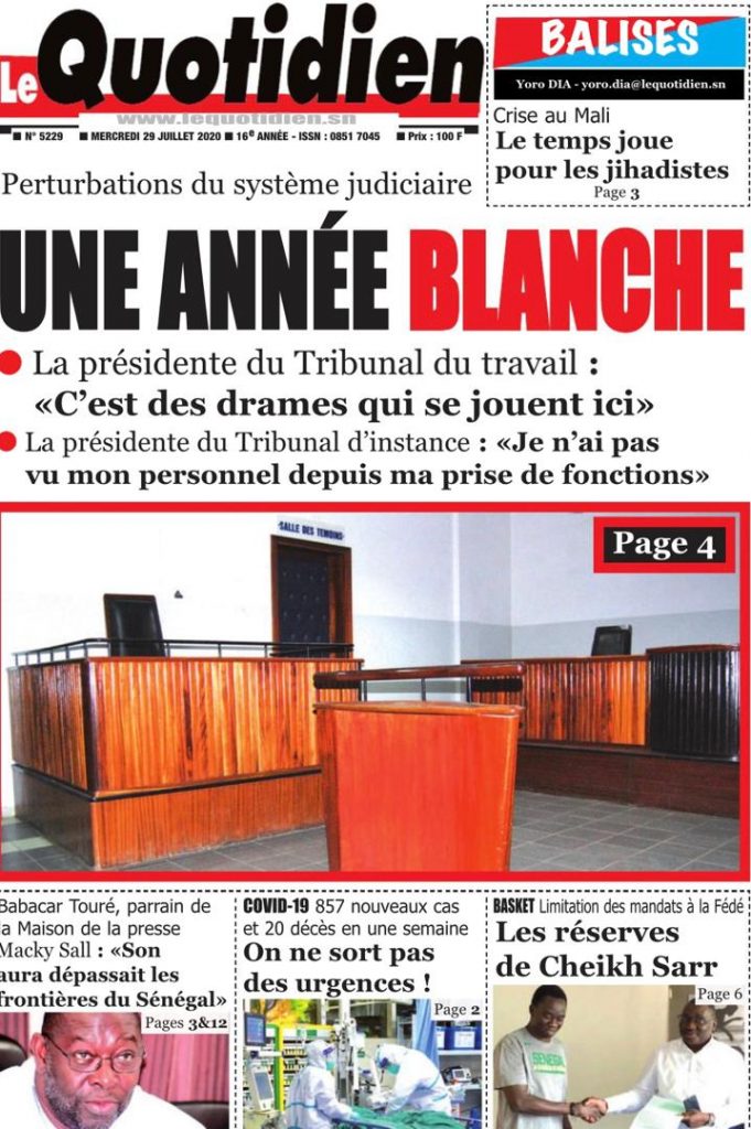 " /> La Une des Quotidiens du Mercredi 29 Juillet 2020 Publié le 29 Juil, 2020 À DÉCOUVRIR Les Unes des quotidiens nationaux du 03 novembre 2025 3 Nov, 2025 Source : Ma Revue de presse par Mamadou Ly – rp221.com Partager ->