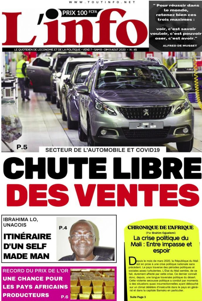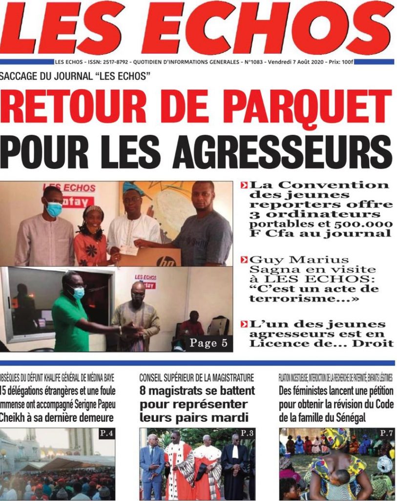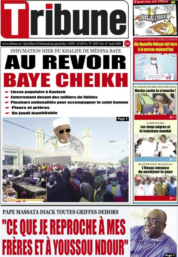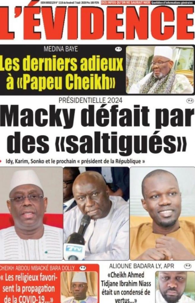 " /> La Une des Quotidiens du Vendredi 07 Août 2020 Publié le 7 Août, 2020 À DÉCOUVRIR Les Unes des quotidiens nationaux du 05 novembre 2025 5 Nov, 2025 Source : Ma Revue de presse par Mamadou Ly – rp221.com La Une des Quotidiens Internationaux du Vendredi 07 Août 2020 Partager ->