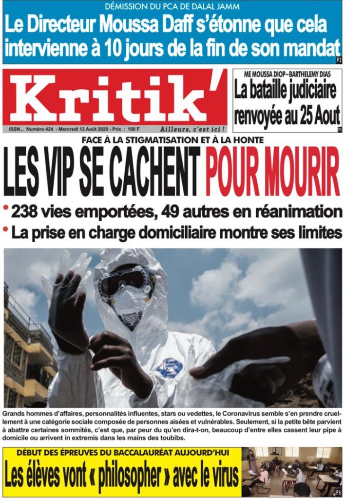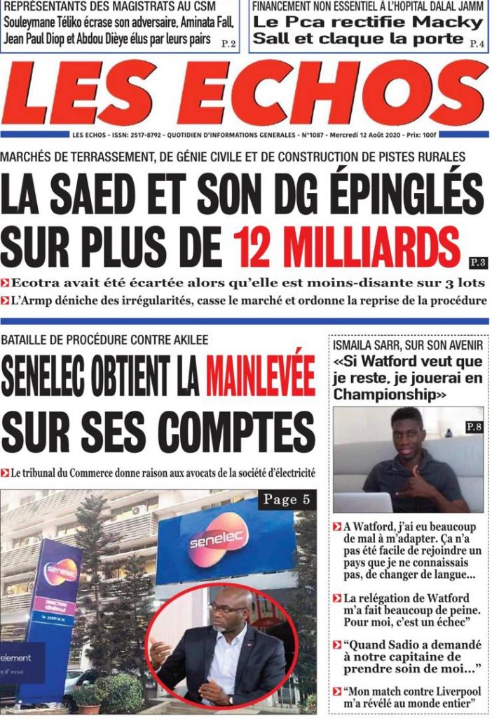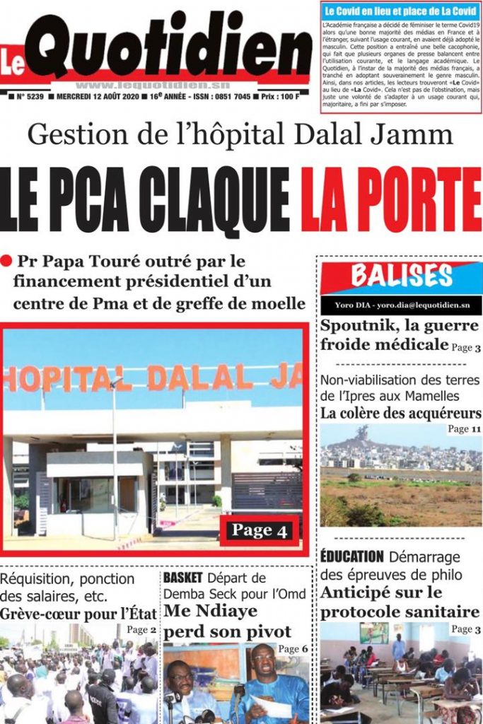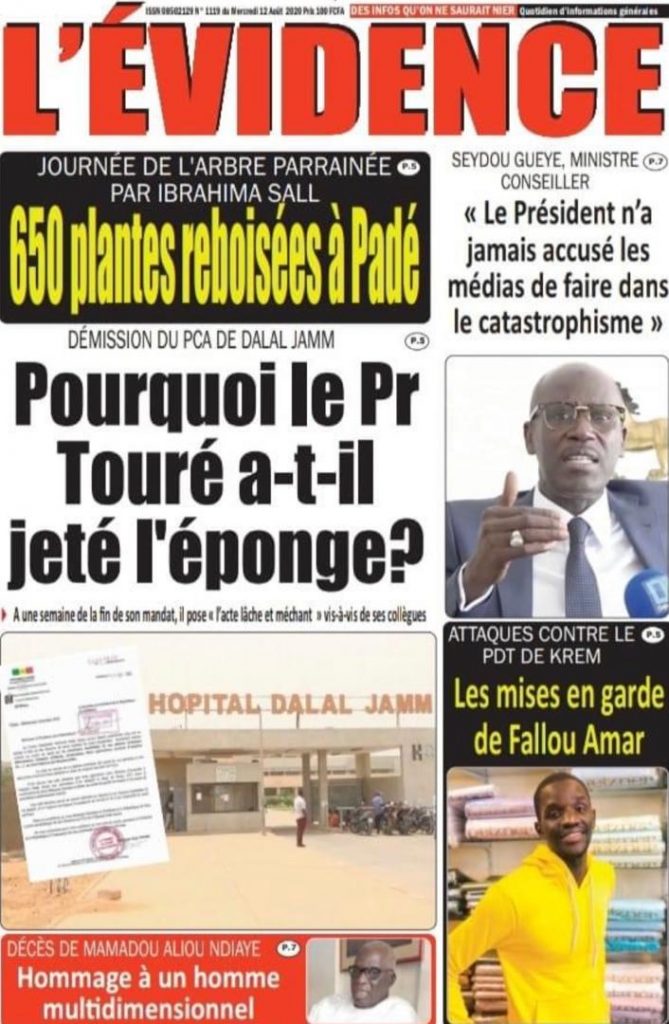 " /> La Une des Quotidiens Nationaux du Mercredi 12 Août 2020 Publié le 12 Août, 2020 À DÉCOUVRIR Les Unes des quotidiens nationaux du 03 novembre 2025 3 Nov, 2025 Source : Ma Revue de presse par Mamadou Ly – rp221.com La Une des Quotidiens Internationaux du Mercredi 12 Août 2020 Partager ->