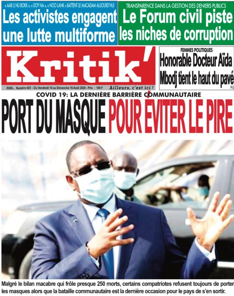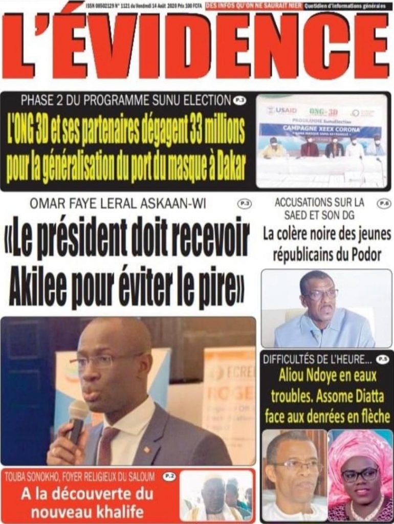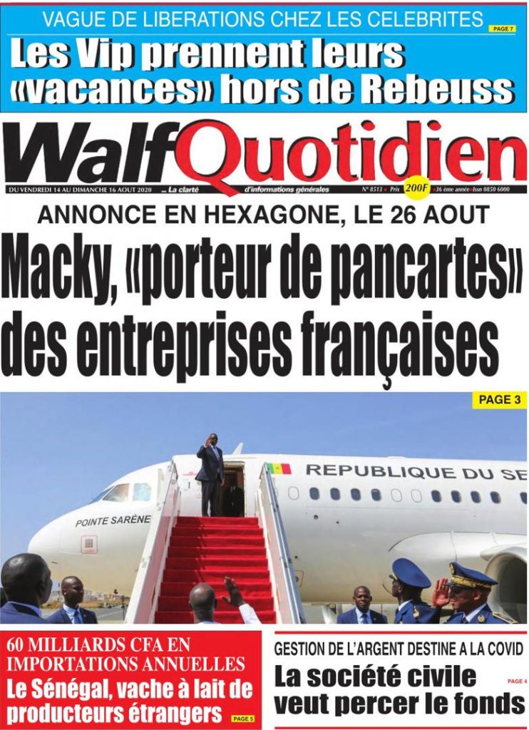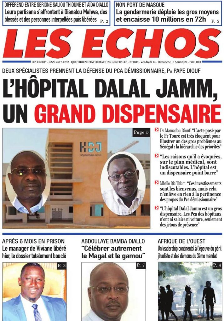 " /> La Une des Quotidiens Nationaux du Vendredi 14 Août 2020 Publié le 14 Août, 2020 À DÉCOUVRIR Les Unes des quotidiens nationaux du 03 novembre 2025 3 Nov, 2025 Source : Ma Revue de presse par Mamadou Ly – rp221.com La Une des Quotidiens Internationaux du Vendredi 14 Août 2020 Partager ->