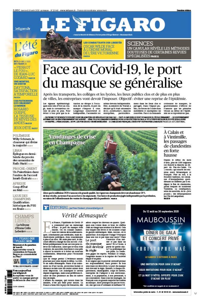 " /> La Une des Quotidiens Internationaux du Mercredi 19 Août 2020 Publié le 19 Août, 2020 À DÉCOUVRIR Les Unes des quotidiens nationaux du 03 novembre 2025 3 Nov, 2025 LIRE AUSSI La Une des Quotidiens Nationaux du Mercredi 19 Août 2020 Partager ->