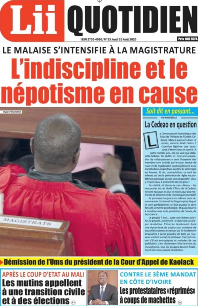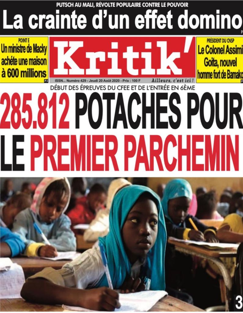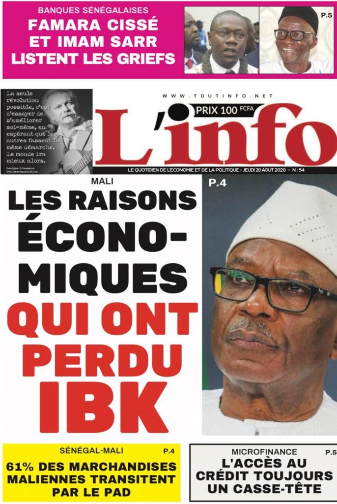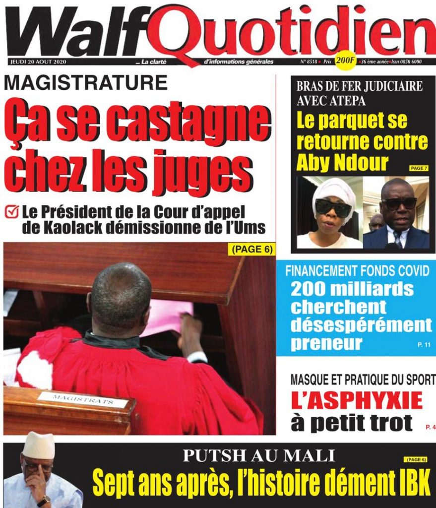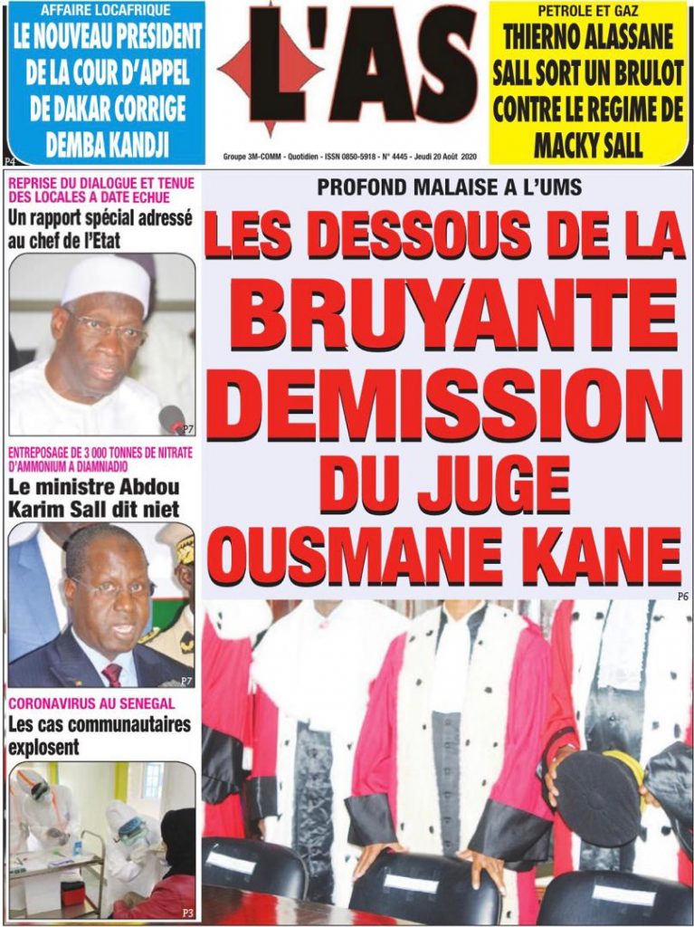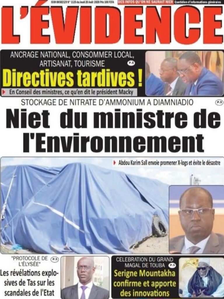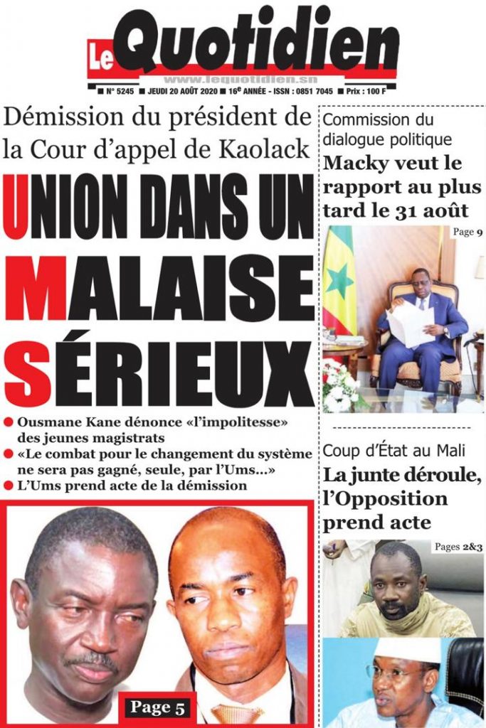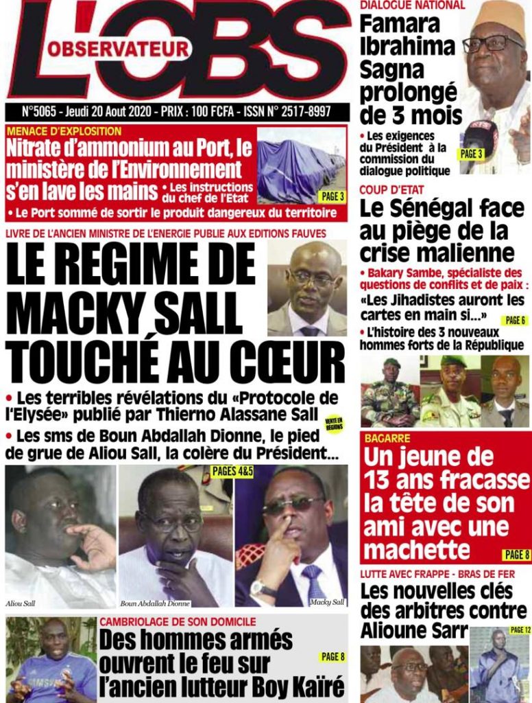 " /> La Une des Quotidiens Nationaux du Jeudi 20 Août 2020 Publié le 20 Août, 2020 À DÉCOUVRIR Les Unes des quotidiens nationaux du 05 novembre 2025 5 Nov, 2025 Source : Ma Revue de presse par Mamadou Ly – rp221.comLIRE AUSSI La Une des Quotidiens Internationaux du Jeudi 20 Août 2020 Partager ->