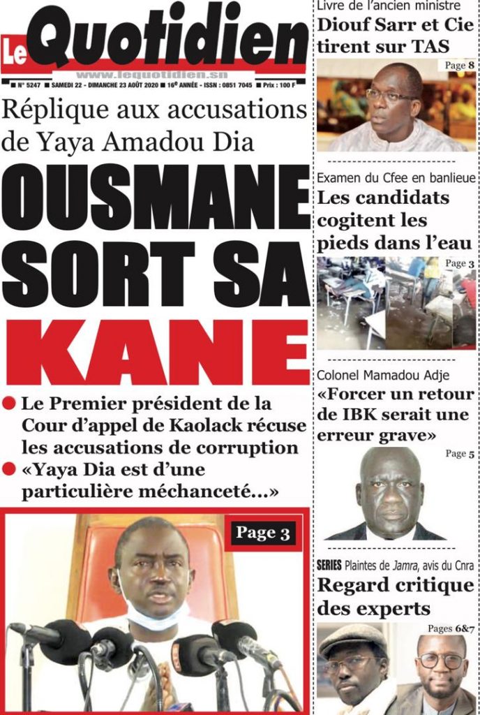" /> La Une des Quotidiens Nationaux du Samedi 22 Août 2020 Publié le 22 Août, 2020 À DÉCOUVRIR Les Unes des quotidiens nationaux du 03 novembre 2025 3 Nov, 2025 Source : Ma Revue de presse par Mamadou Ly – rp221.comLIRE AUSSI La Une des Quotidiens Internationaux du Samedi 22 Août 2020 Partager ->