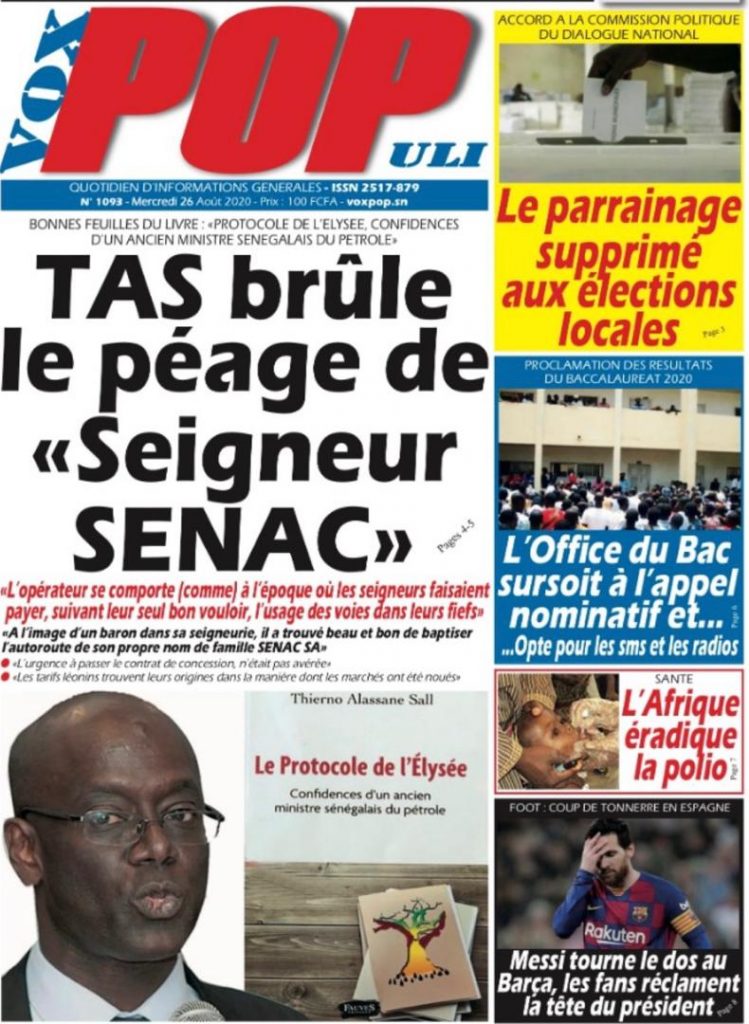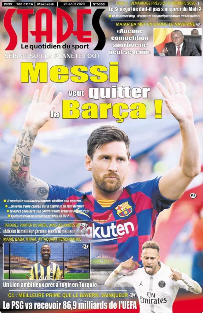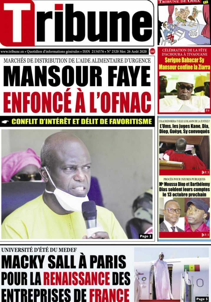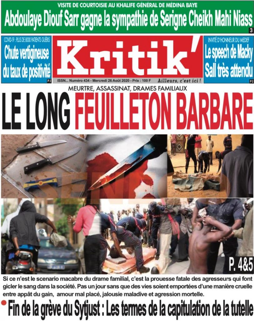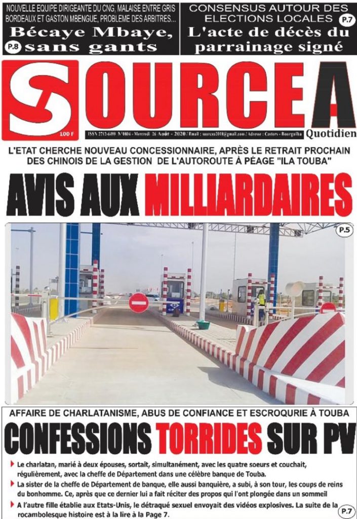 " /> La Une des Quotidiens Nationaux du Mercredi 26 AOût 2020 Publié le 26 Août, 2020 À DÉCOUVRIR Les Unes des quotidiens nationaux du 03 novembre 2025 3 Nov, 2025 Source : Ma Revue de presse par Mamadou Ly – rp221.comLIRE AUSSI La Une des Quotidiens Internationaux du Mercredi 26 Août 2020 Partager ->