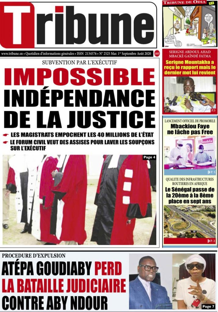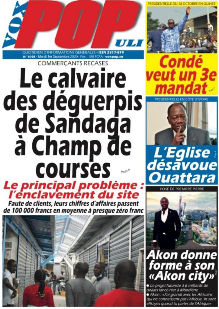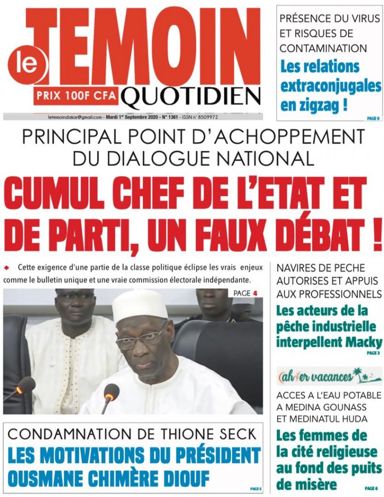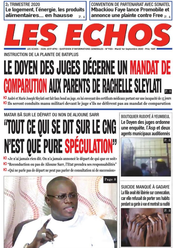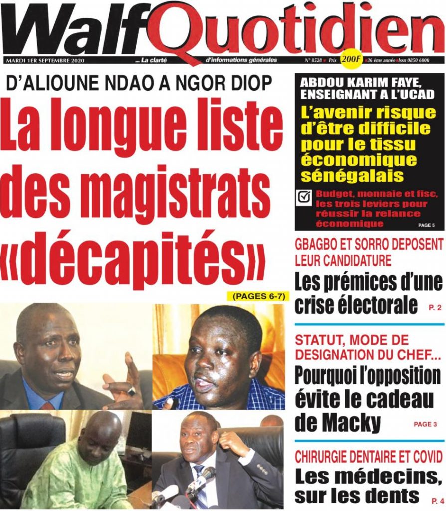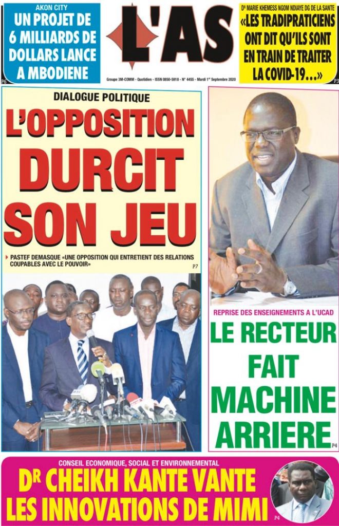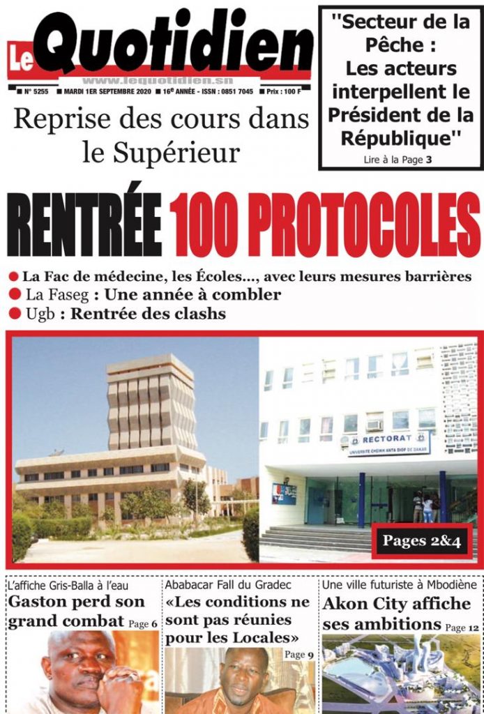 " /> La Une des Quotidiens Nationaux du Mardi 01 Septembre 2020 Publié le 1 Sep, 2020 À DÉCOUVRIR Les Unes des quotidiens nationaux du 03 novembre 2025 3 Nov, 2025 Source : Ma Revue de presse par Mamadou Ly – rp221.comLIRE AUSSI La Une des Quotidiens Internationaux du Mardi 01 Septembre 2020 Partager ->