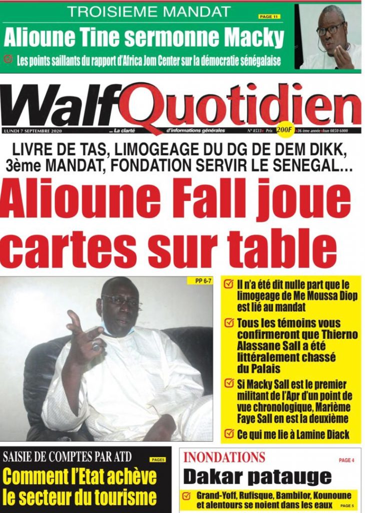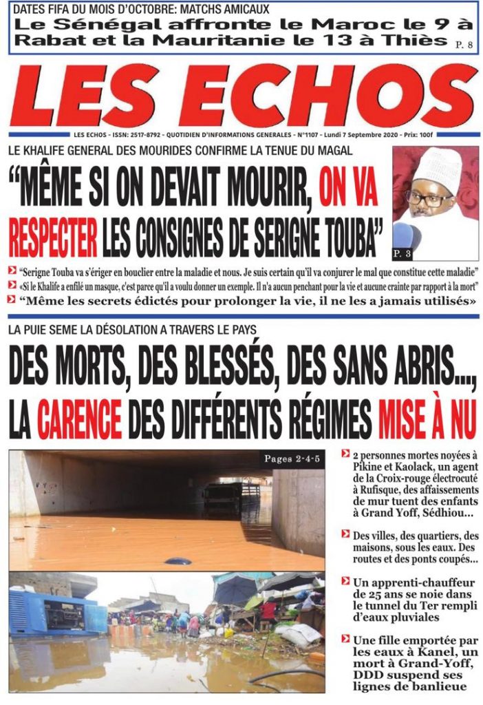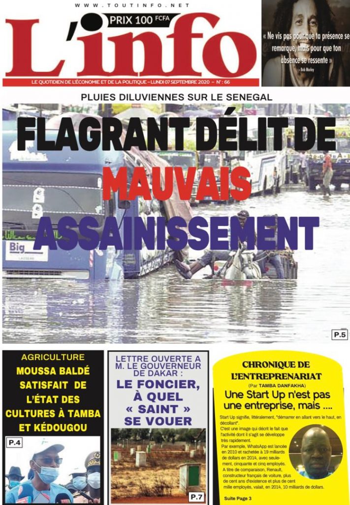 " /> La Une des Quotidiens Nationaux du Lundi 07 Septembre 2020 Publié le 7 Sep, 2020 À DÉCOUVRIR Les Unes des quotidiens nationaux du 03 novembre 2025 3 Nov, 2025 Source : Ma Revue de presse par Mamadou Ly – rp221.comLIRE AUSSI La Une des Quotidiens Internationaux du Lundi 07 Septembre 2020 Partager ->