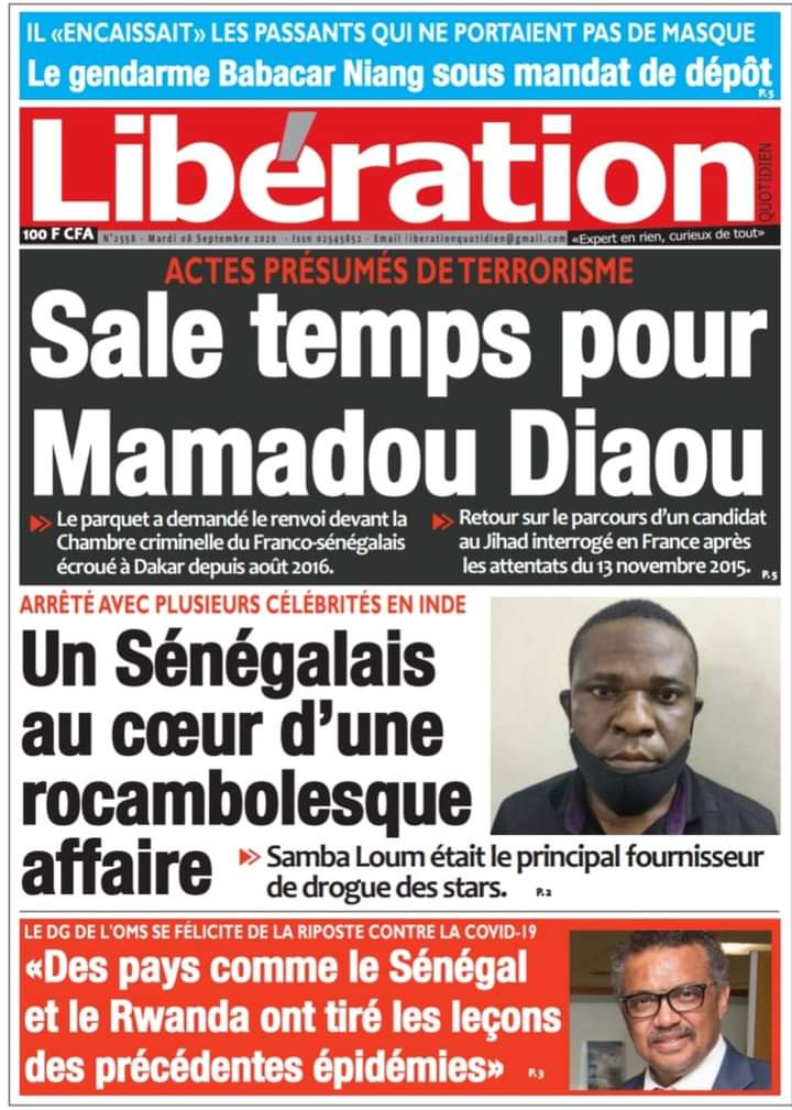 " /> La Une des Quotidiens Nationaux du Mardi 08 Septembre 2020 Publié le 8 Sep, 2020 À DÉCOUVRIR Les Unes des quotidiens nationaux du 31 octobre 2025 31 Oct, 2025 LIRE AUSSI La Une des Quotidiens Internationaux du Mardi 08 Septembre 2020 Source : Ma Revue de presse par Mamadou Ly – rp221.com Partager ->