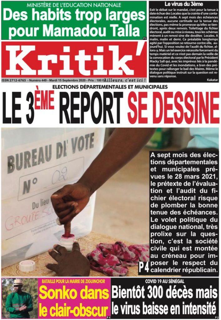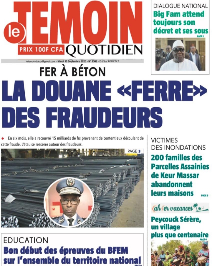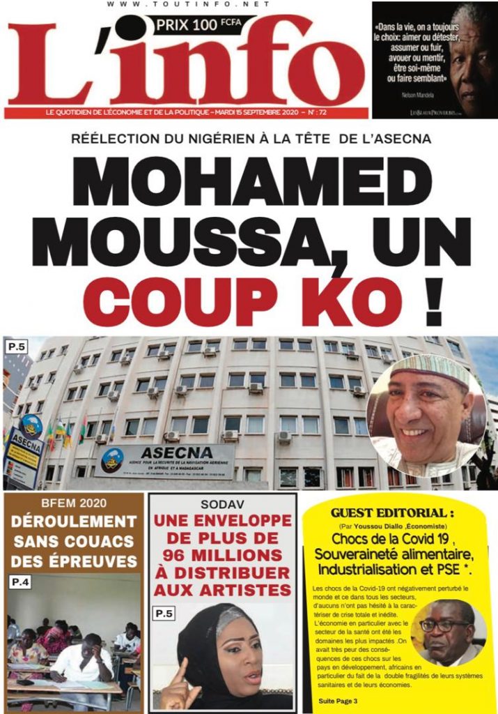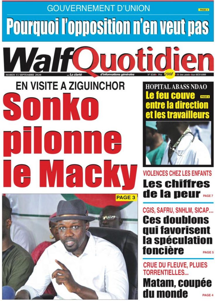 " /> La Une des Quotidiens Nationaux du Mardi 15 Septembre 2020 Publié le 15 Sep, 2020 À DÉCOUVRIR Les Unes des quotidiens nationaux du 03 novembre 2025 3 Nov, 2025 Source : Ma Revue de presse par Mamadou Ly – rp221.comLIRE AUSSI La Une des Quotidiens Internationaux du Mardi 15 Septembre 2020 Partager ->