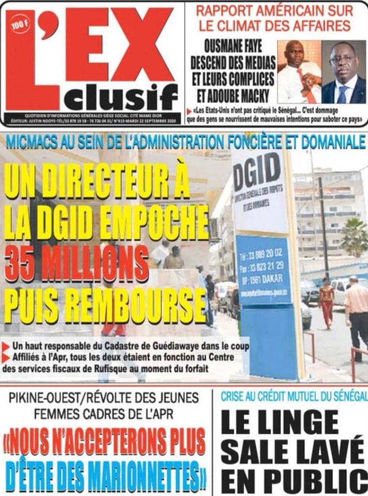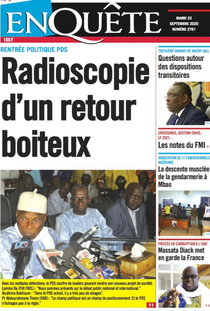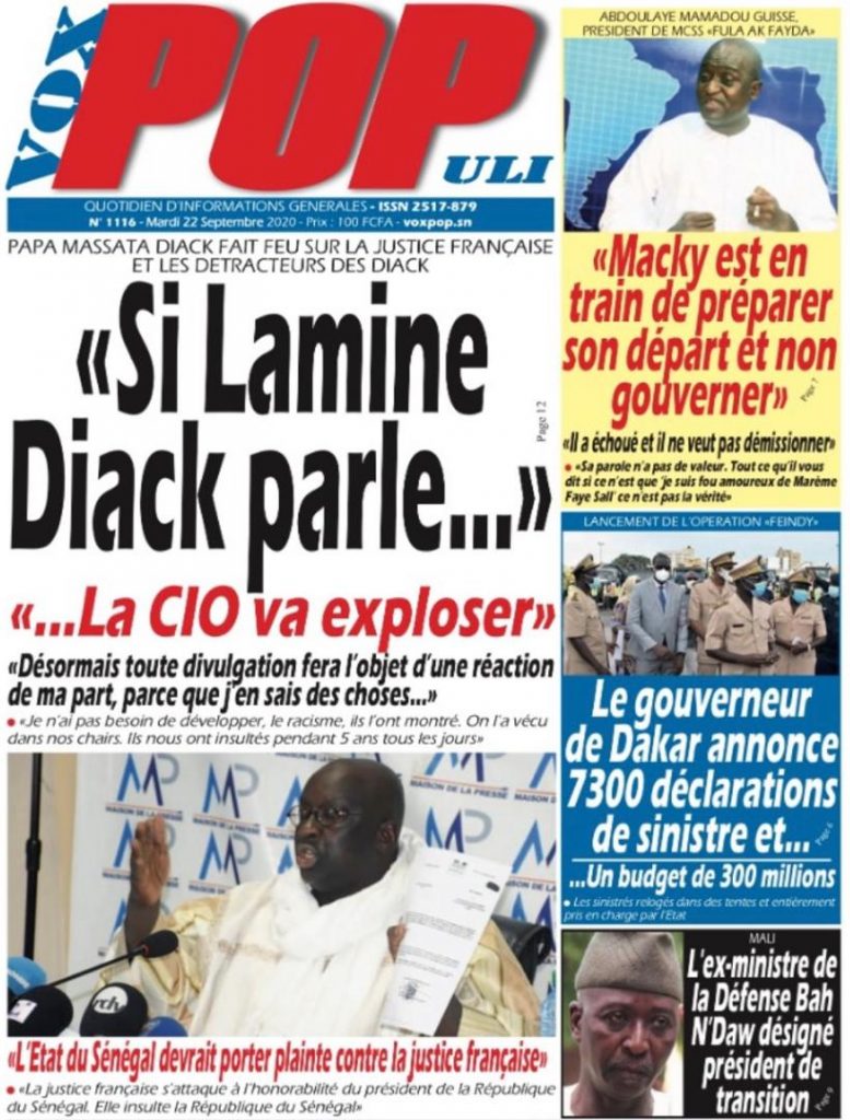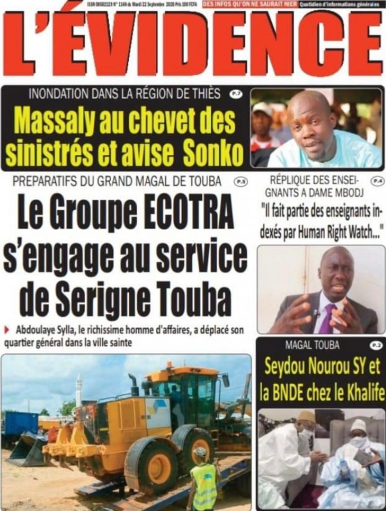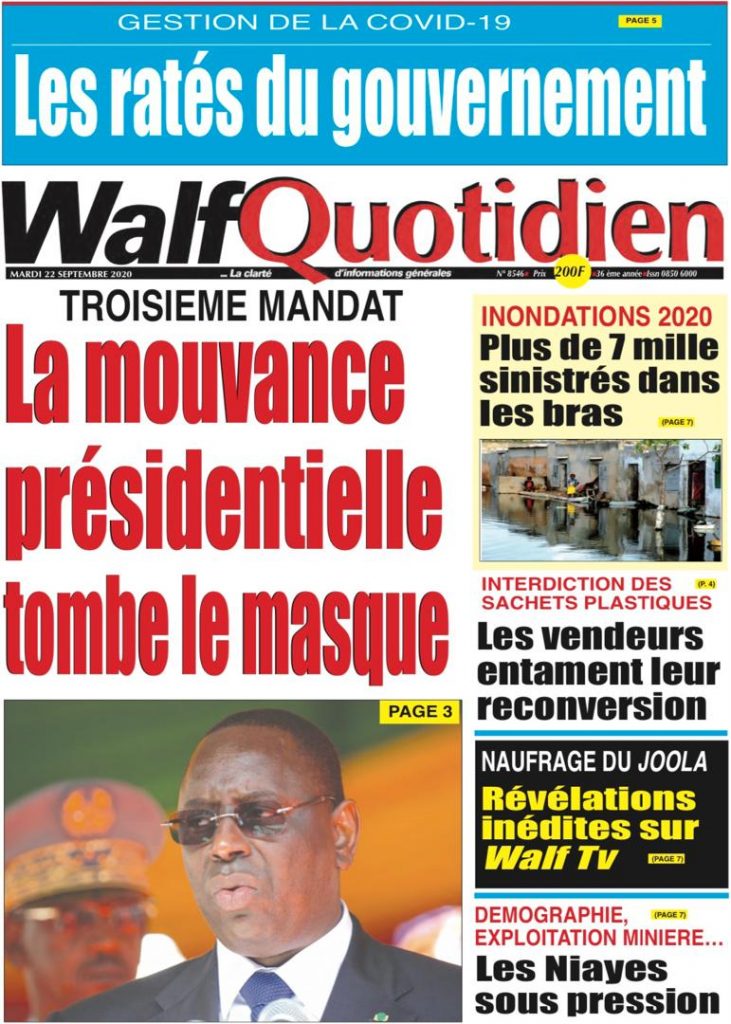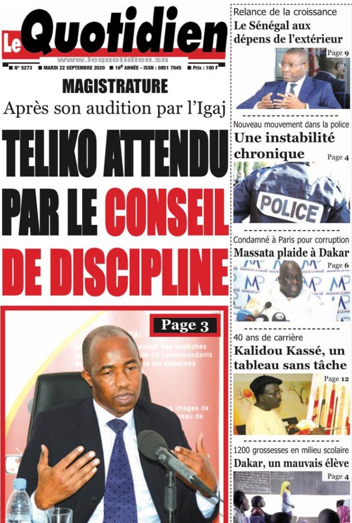 " /> La Une des Quotidiens Nationaux du Mardi 22 Septembre 2020 Publié le 22 Sep, 2020 À DÉCOUVRIR Les Unes des quotidiens nationaux du 03 novembre 2025 3 Nov, 2025 Source : Ma Revue de presse par Mamadou Ly – rp221.comLIRE AUSSI La Une des Quotidiens Internationaux du Mardi 22 Septembre 2020 Partager ->