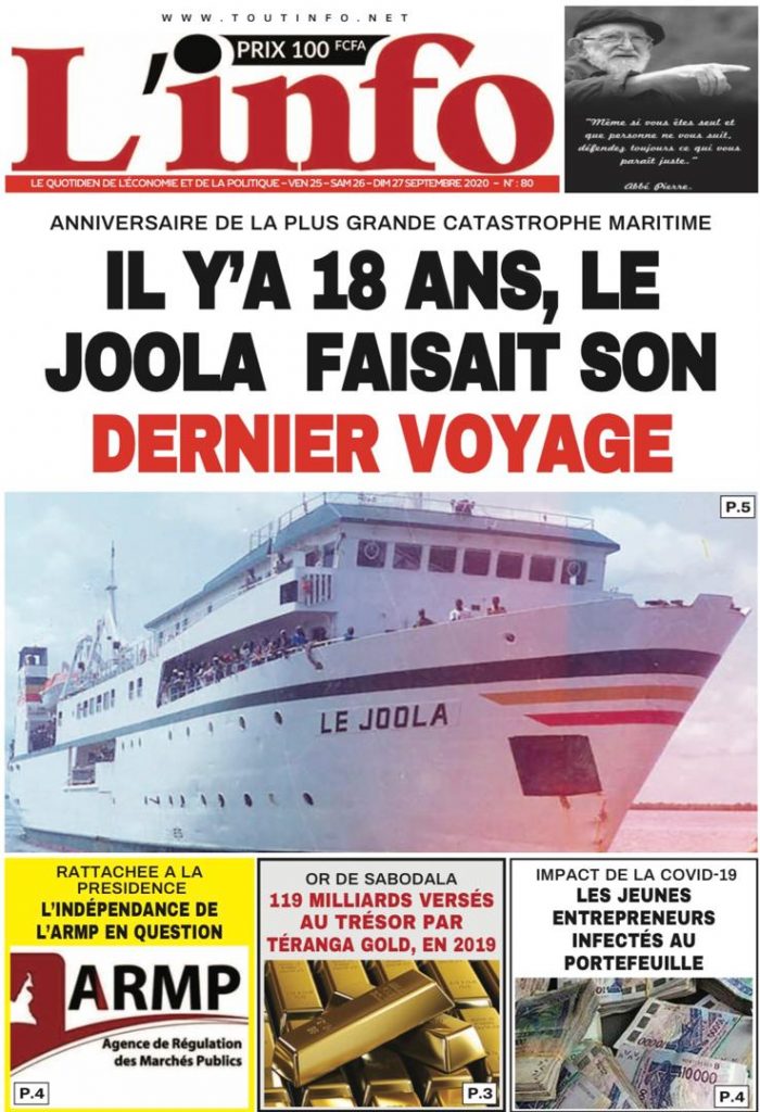 " /> La Une des Quotidiens Nationaux du Vendredi 25 Septembre 2020 Publié le 25 Sep, 2020 À DÉCOUVRIR Les Unes des quotidiens nationaux du 03 novembre 2025 3 Nov, 2025 LIRE AUSSI La Une des Quotidiens Internationaux du Vendredi 25 Septembre 2020 Partager ->
