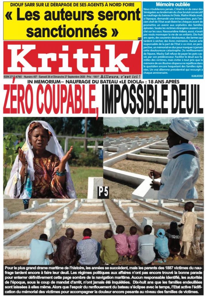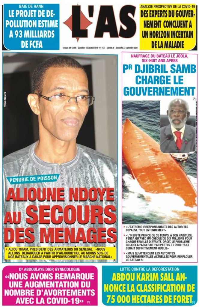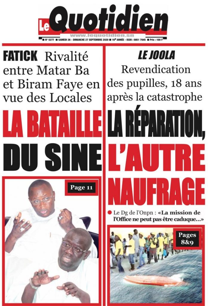 " /> La Une des Quotidiens Nationaux du Samedi 26 Septembre 2020 Publié le 26 Sep, 2020 À DÉCOUVRIR Les Unes des quotidiens nationaux du 19 novembre 2025 19 Nov, 2025 Source : Ma Revue de presse par Mamadou Ly – rp221.comLIRE AUSSI La Une des Quotidiens Internationaux du Samedi 26 Septembre 2020 Partager ->