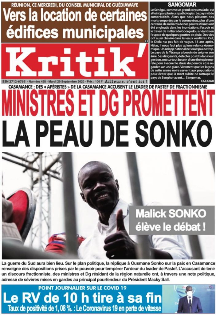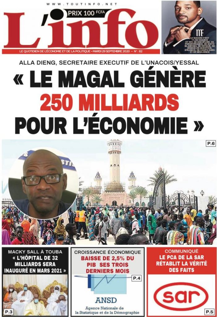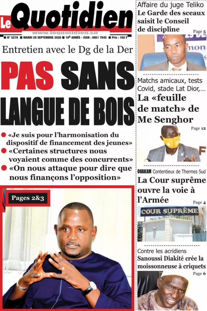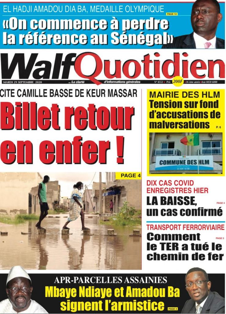 " /> La Une des Quotidiens Nationaux du Mardi 29 Septembre 2020 Publié le 29 Sep, 2020 À DÉCOUVRIR Les Unes des quotidiens nationaux du 31 octobre 2025 31 Oct, 2025 Source : Ma Revue de presse par Mamadou Ly – rp221.comLIRE AUSSI La Une des Quotidiens Internationaux du Mardi 29 Septembre 2020 Partager ->