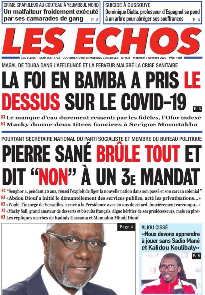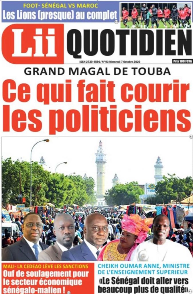 " /> La Une des Quotidiens Nationaux du Mercredi 07 Octobre 2020 Publié le 7 Oct, 2020 À DÉCOUVRIR Les Unes des quotidiens nationaux du 31 octobre 2025 31 Oct, 2025 LIRE AUSSI La Une des Quotidiens Internationaux du Mercredi 07 Octobre 2020 Partager ->