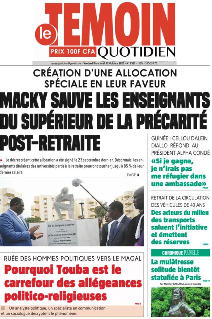 " /> La Une des Quotidiens Nationaux du Vendredi 09 Octobre 2020 Publié le 9 Oct, 2020 À DÉCOUVRIR Les Unes des quotidiens nationaux du 31 octobre 2025 31 Oct, 2025 Source : Ma Revue de presse par Mamadou Ly – rp221.comLIRE AUSSI La Une des Quotidiens Internationaux du Vendredi 09 Octobre 2020 Partager ->