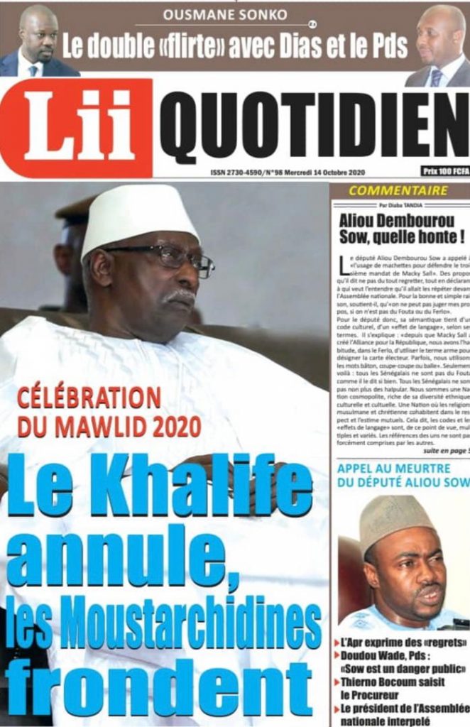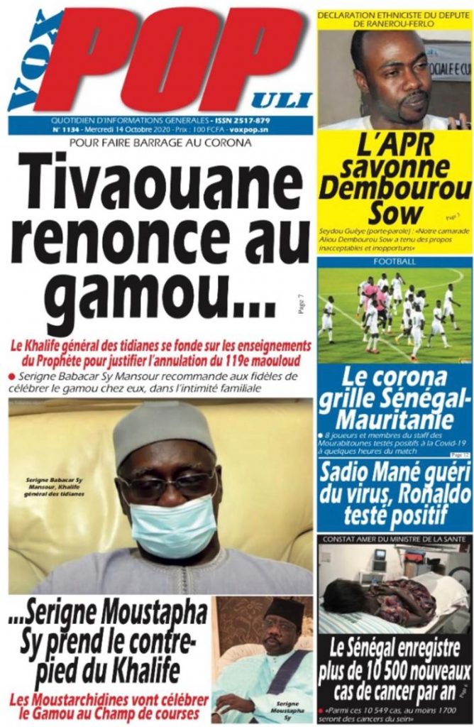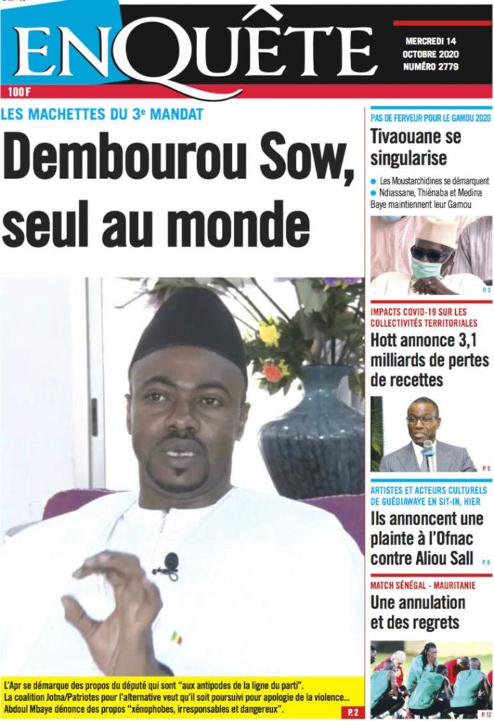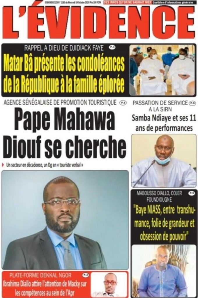 " /> La Une des Quotidiens Nationaux du Mercredi 14 Octobre 2020 Publié le 14 Oct, 2020 À DÉCOUVRIR Les Unes des quotidiens nationaux du 31 octobre 2025 31 Oct, 2025 Source : Ma Revue de presse par Mamadou Ly – rp221.comLIRE AUSSI La Une des Quotidiens Internationaux du Mercredi 14 Octobre 2020 Partager ->