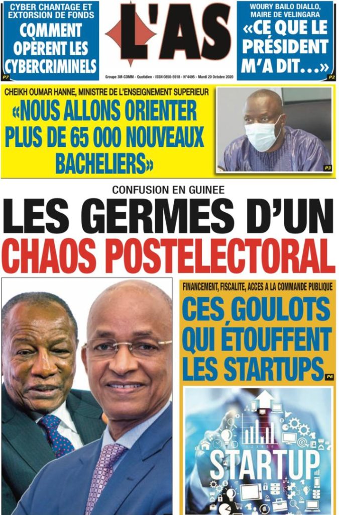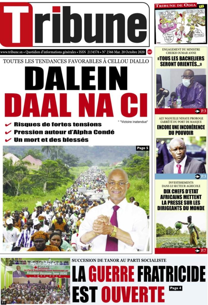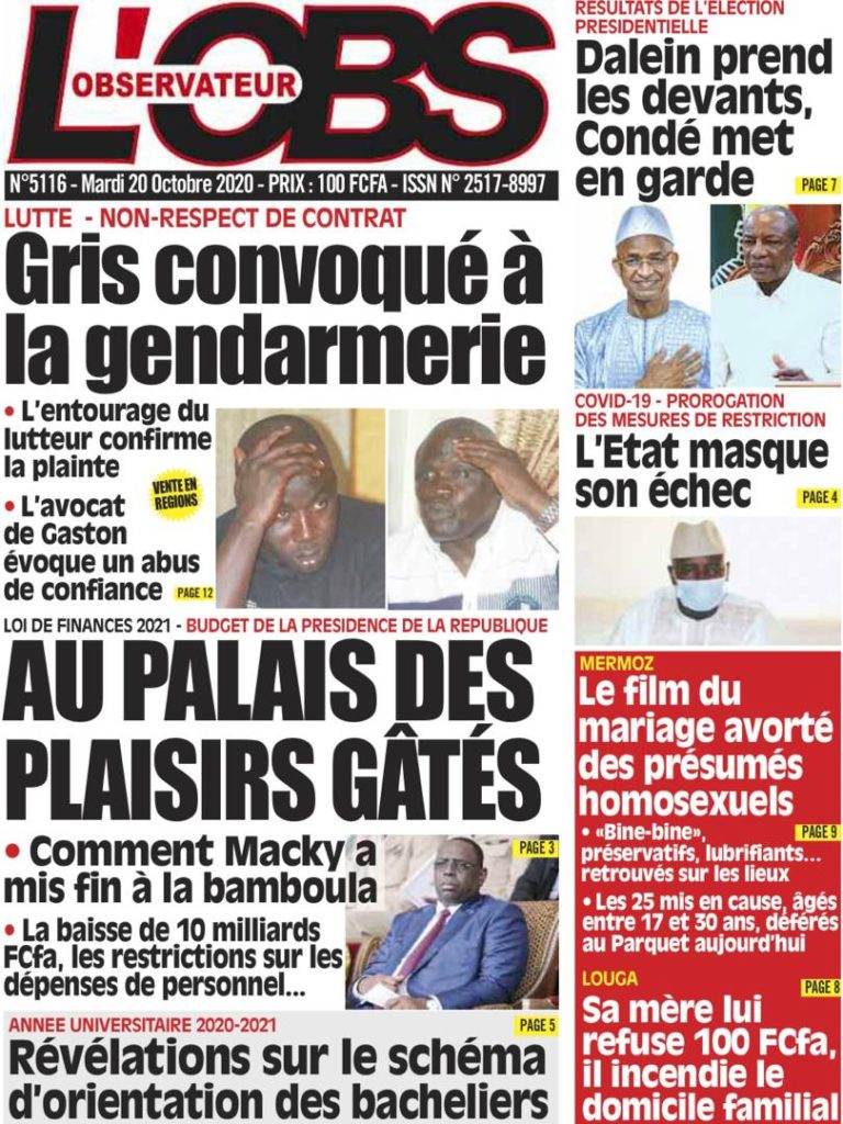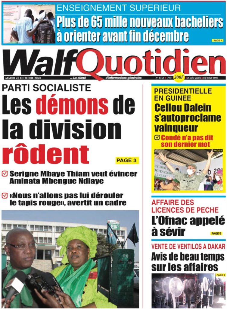 " /> La Une des quotidiens nationaux du Mardi 20 Octobre 2020 Publié le 20 Oct, 2020 À DÉCOUVRIR Les Unes des quotidiens nationaux du 18 novembre 2025 18 Nov, 2025 Source : Ma Revue de presse par Mamadou Ly – rp221.com Partager ->