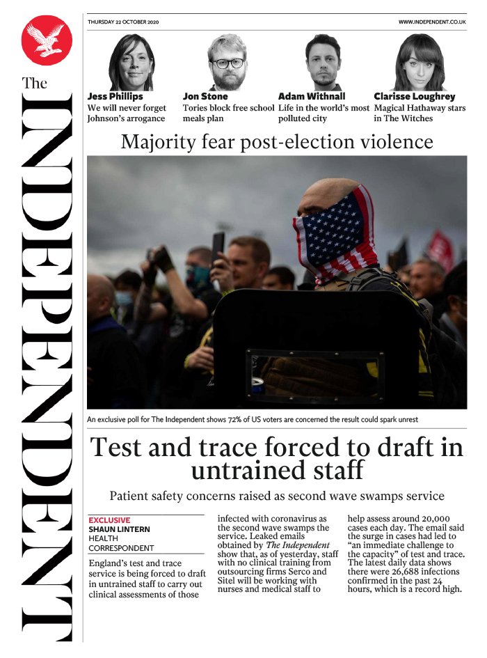 " /> La Une des Quotidiens Internationaux du Jeudi 22 Octobre 2020 Publié le 22 Oct, 2020 À DÉCOUVRIR Les Unes des quotidiens nationaux du 03 novembre 2025 3 Nov, 2025 Partager ->