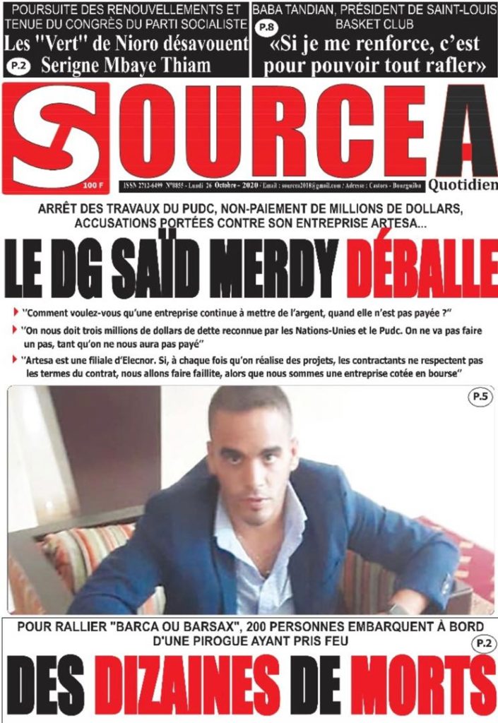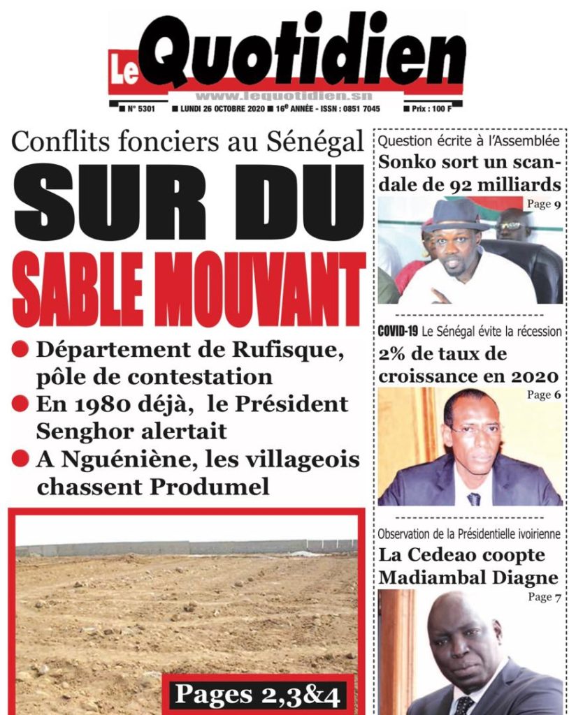 " /> La Une des quotidiens nationaux du Lundi 26 Octobre 2020 Publié le 26 Oct, 2020 À DÉCOUVRIR Les Unes des quotidiens nationaux du 03 novembre 2025 3 Nov, 2025 Source : Ma Revue de presse par Mamadou Ly – rp221.com Partager ->