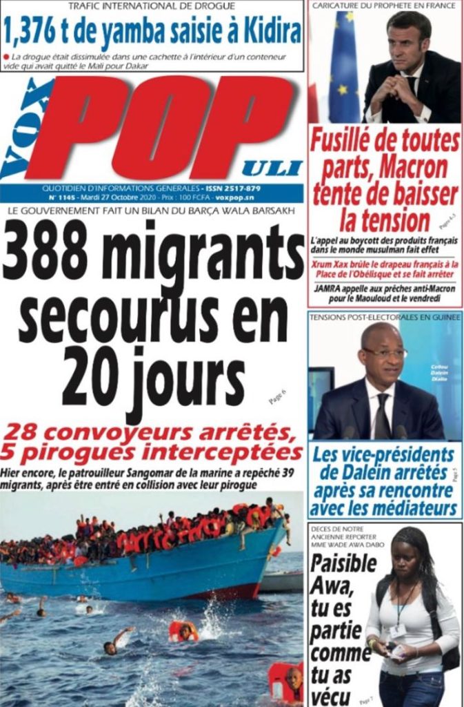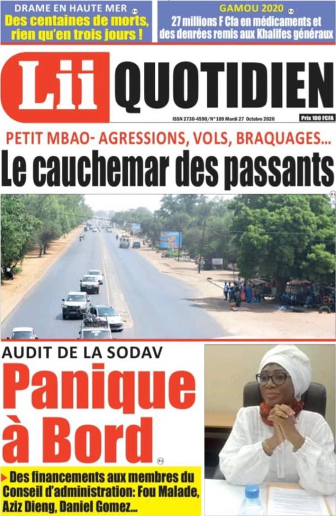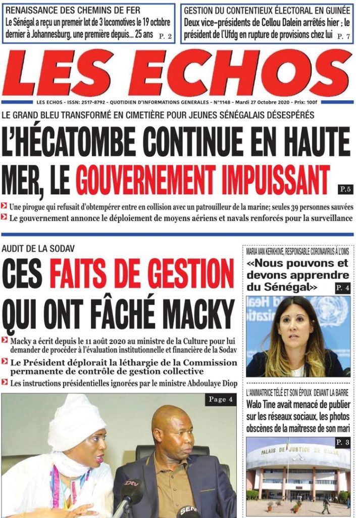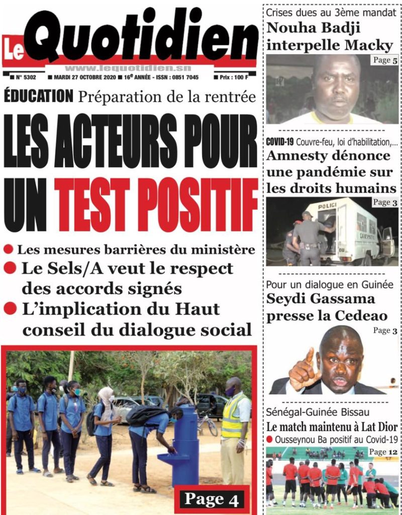 " /> La Une des quotidiens nationaux du Mardi 27 Octobre 2020 Publié le 27 Oct, 2020 À DÉCOUVRIR Les Unes des quotidiens nationaux du 31 octobre 2025 31 Oct, 2025 Source : Ma Revue de presse par Mamadou Ly – rp221.com Partager ->