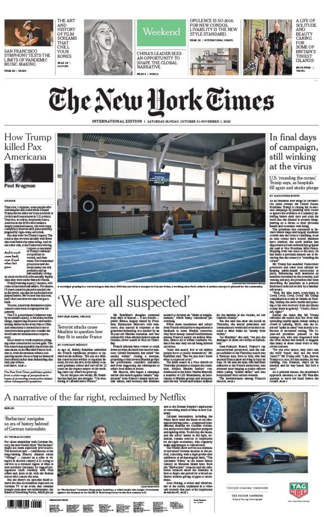 " /> La Une des Quotidiens Internationaux du Samedi 31 Octobre 2020 Publié le 31 Oct, 2020 À DÉCOUVRIR Les Unes des quotidiens nationaux du 03 novembre 2025 3 Nov, 2025 Partager ->