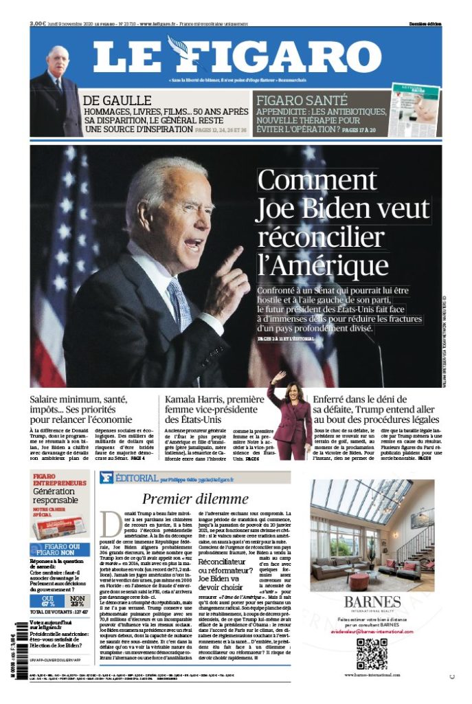 " /> La Une des Quotidiens Internationaux du Lundi 9 Novembre 2020 Publié le 9 Nov, 2020 À DÉCOUVRIR Les Unes des quotidiens nationaux du 29 octobre 2025 29 Oct, 2025 Partager ->