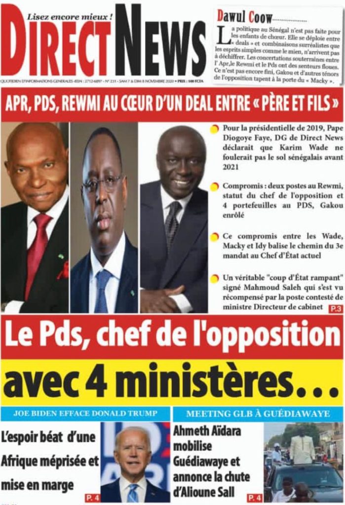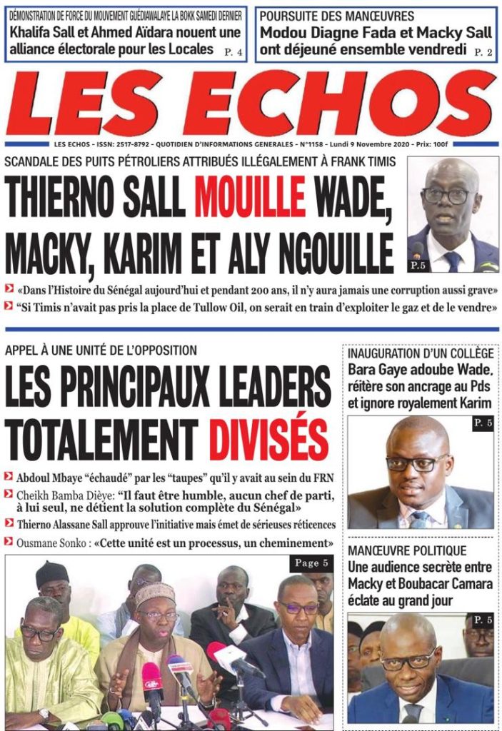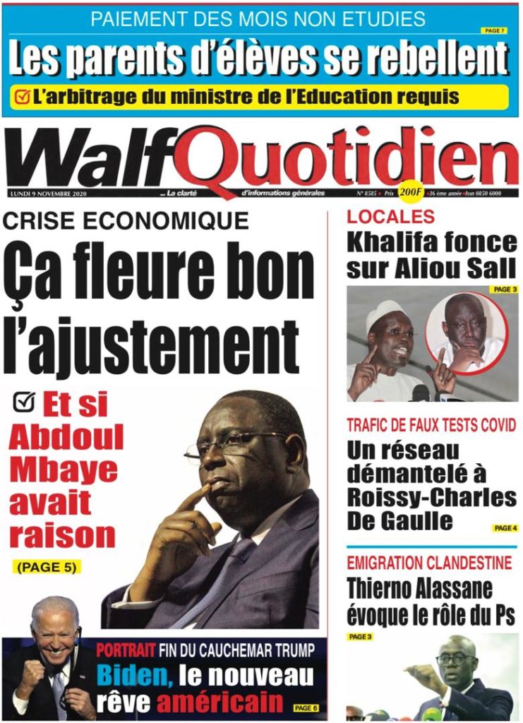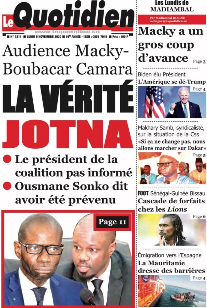 " /> La Une des quotidiens nationaux du Lundi 9 Novembre 2020 Publié le 9 Nov, 2020 À DÉCOUVRIR Les Unes des quotidiens nationaux du 29 octobre 2025 29 Oct, 2025 Source : Ma Revue de presse par Mamadou Ly – rp221.com Partager ->