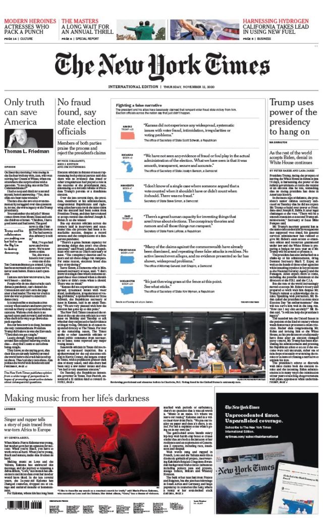 " /> La Une des Quotidiens Internationaux du Jeudi 12 Novembre 2020 Publié le 12 Nov, 2020 À DÉCOUVRIR Les Unes des quotidiens nationaux du 03 novembre 2025 3 Nov, 2025 Partager ->