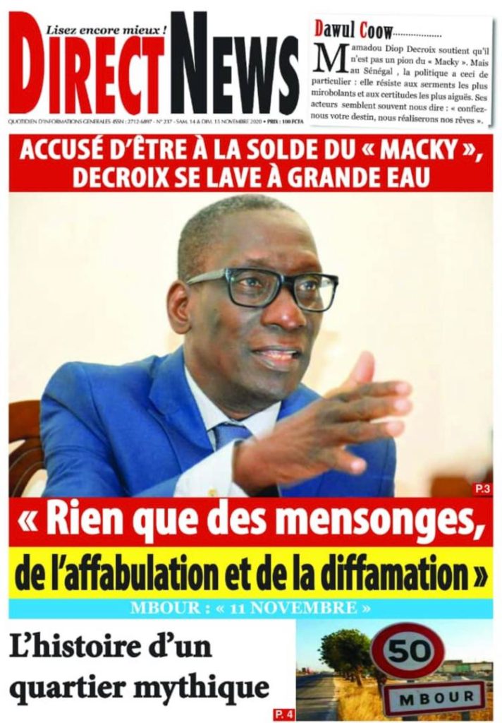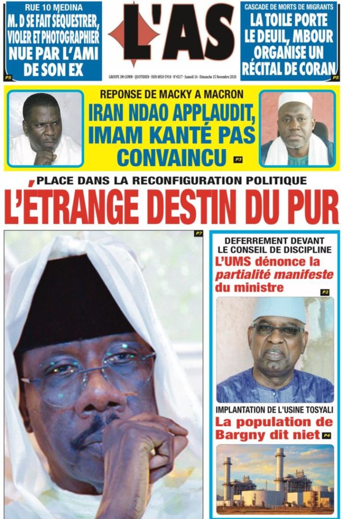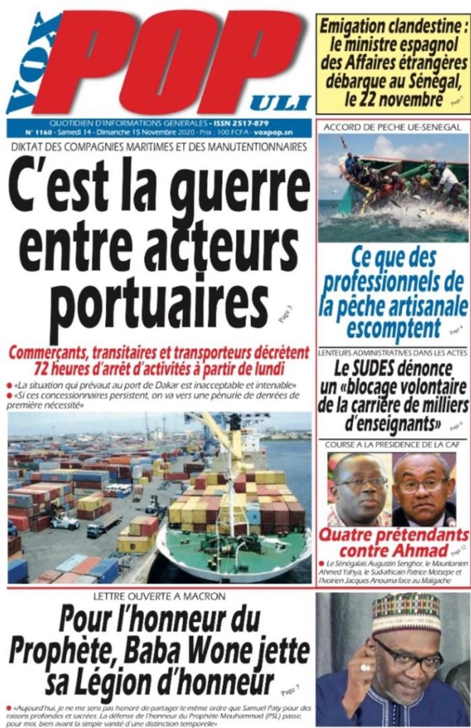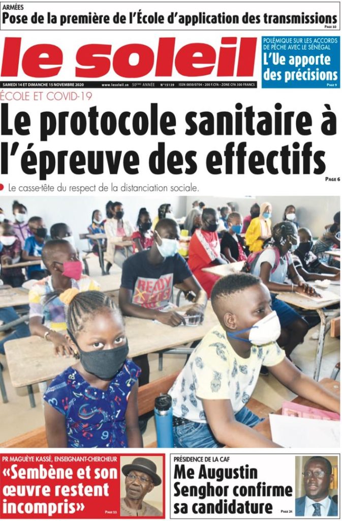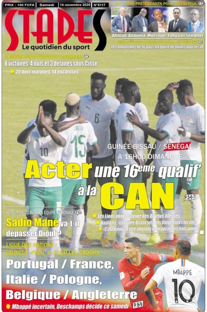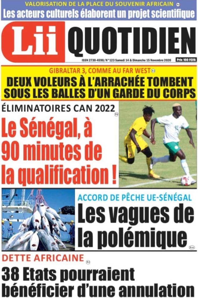 " /> La Une des quotidiens nationaux du Samedi 14 Novembre 2020 Publié le 14 Nov, 2020 À DÉCOUVRIR Les Unes des quotidiens nationaux du 03 novembre 2025 3 Nov, 2025 Source : Ma Revue de presse par Mamadou Ly – rp221.com Partager ->