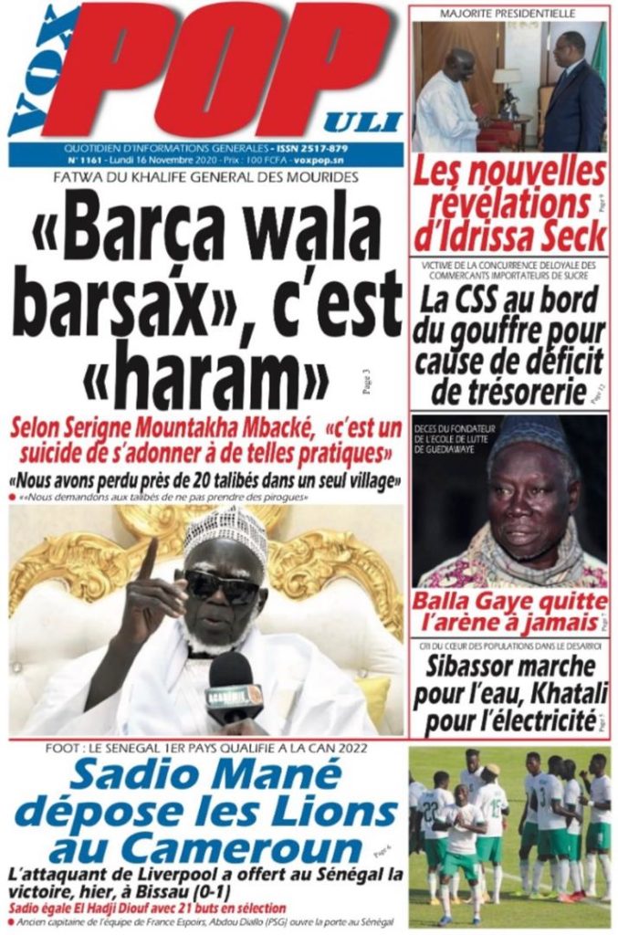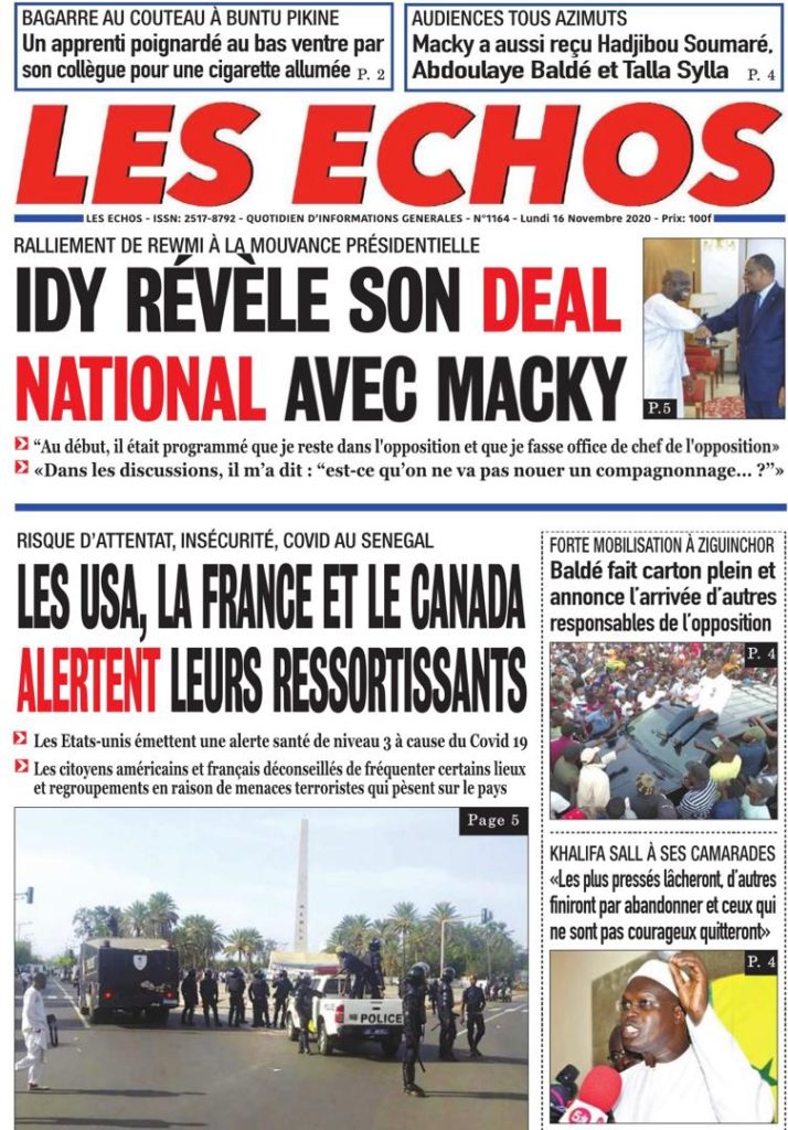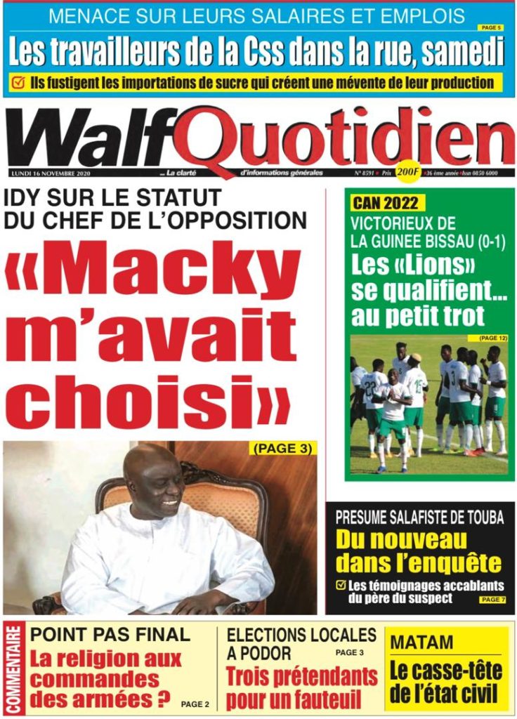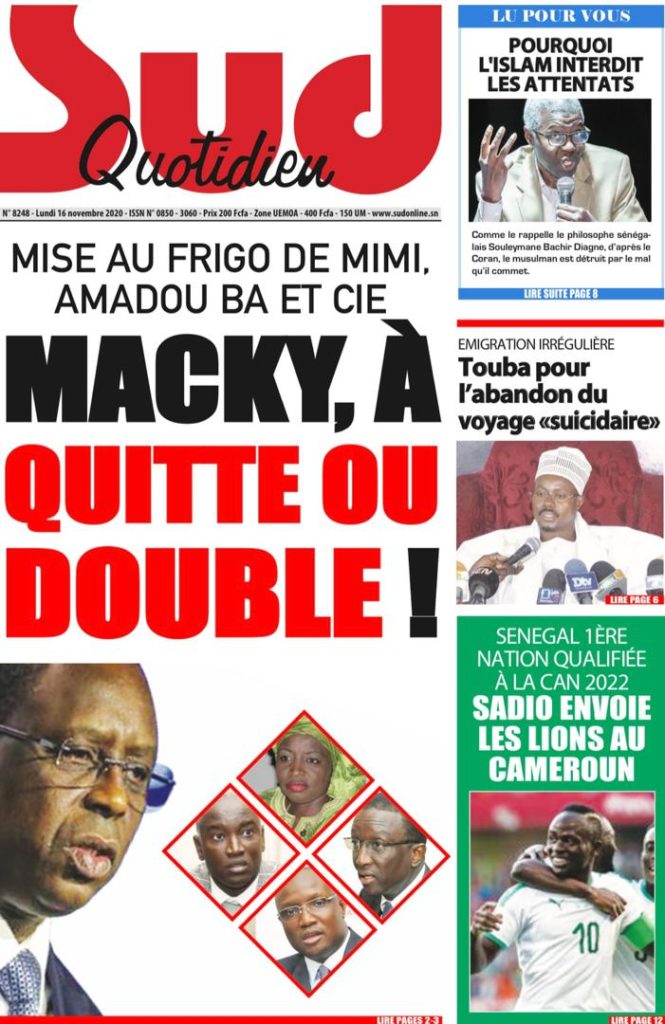 " /> La Une des quotidiens nationaux du Lundi 16 Novembre 2020 Publié le 16 Nov, 2020 À DÉCOUVRIR Les Unes des quotidiens nationaux du 24 octobre 2025 24 Oct, 2025 Source : Ma Revue de presse par Mamadou Ly – rp221.com Partager ->