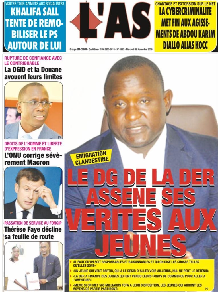 " /> La Une des quotidiens nationaux du Mercredi 18 Novembre 2020 Publié le 18 Nov, 2020 À DÉCOUVRIR Les Unes des quotidiens nationaux du 30 octobre 2025 30 Oct, 2025 Source : Ma Revue de presse par Mamadou Ly – rp221.com Partager ->