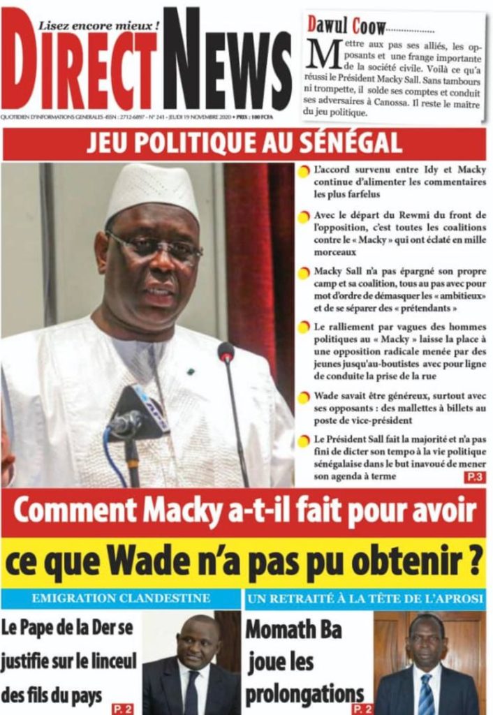 " /> La Une des quotidiens nationaux du Jeudi 19 Novembre 2020 Publié le 19 Nov, 2020 À DÉCOUVRIR Les Unes des quotidiens nationaux du 31 octobre 2025 31 Oct, 2025 Partager ->