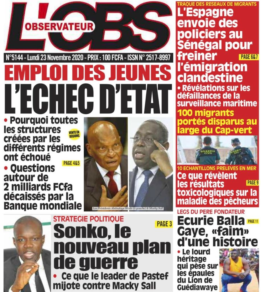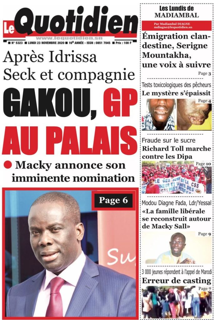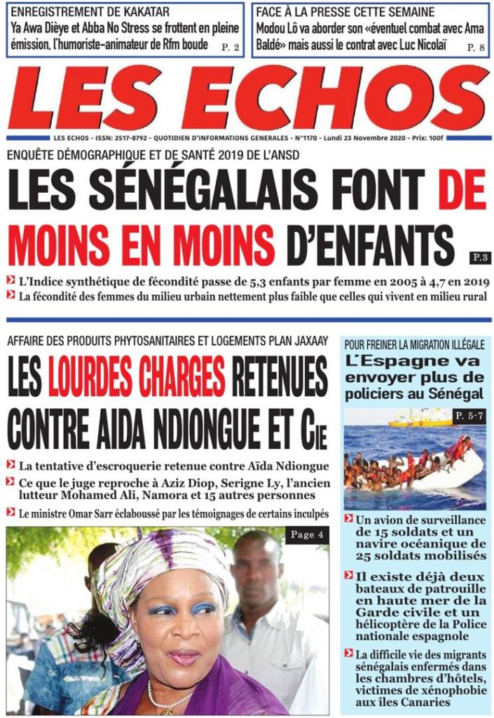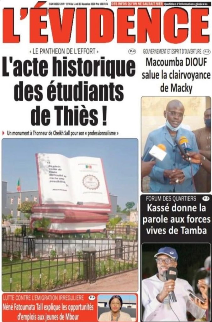 " /> La Une des quotidiens nationaux du Lundi 23 Novembre 2020 Publié le 23 Nov, 2020 À DÉCOUVRIR Les Unes des quotidiens nationaux du 29 octobre 2025 29 Oct, 2025 Source : Ma Revue de presse par Mamadou Ly – rp221.com Partager ->